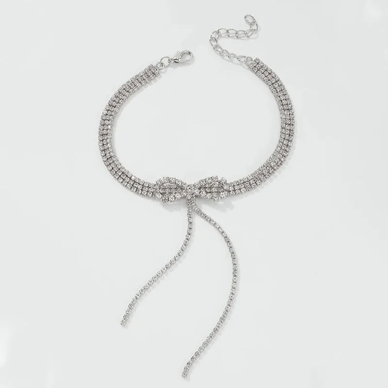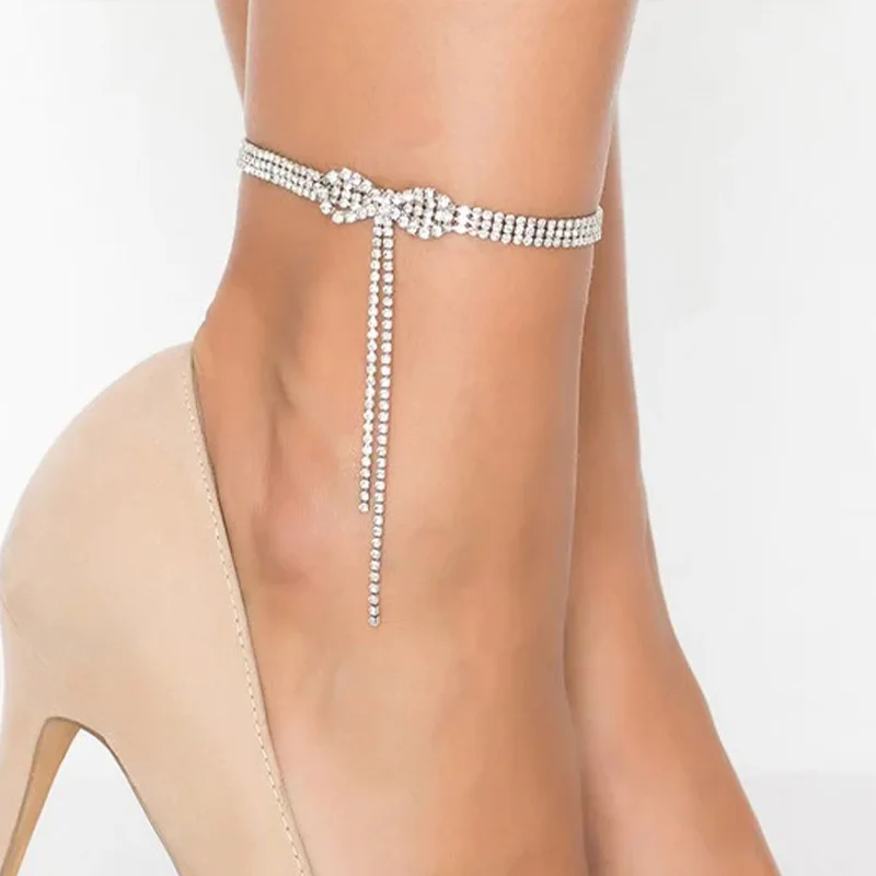 Boho Tassels Bow Butterfly Anklet for Women Bowknot Rhinestone Anklet Bracelet Foot Chain Anklet Jewelry