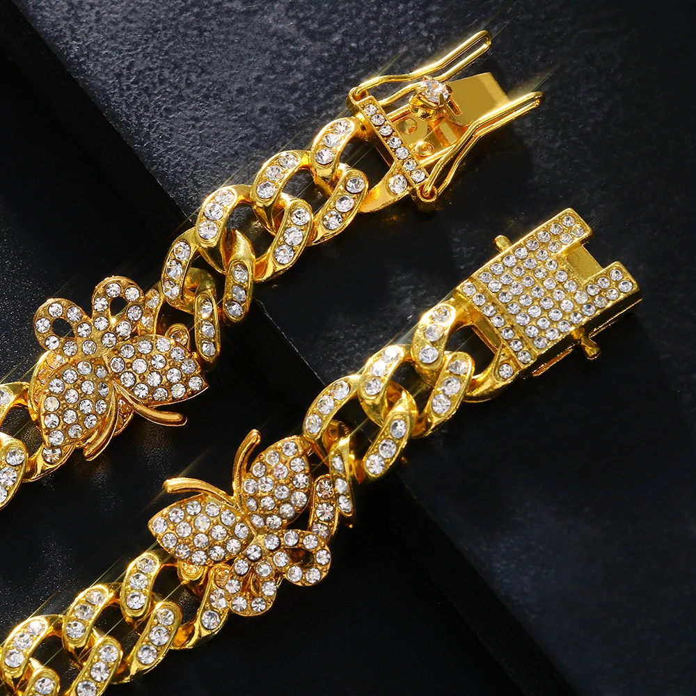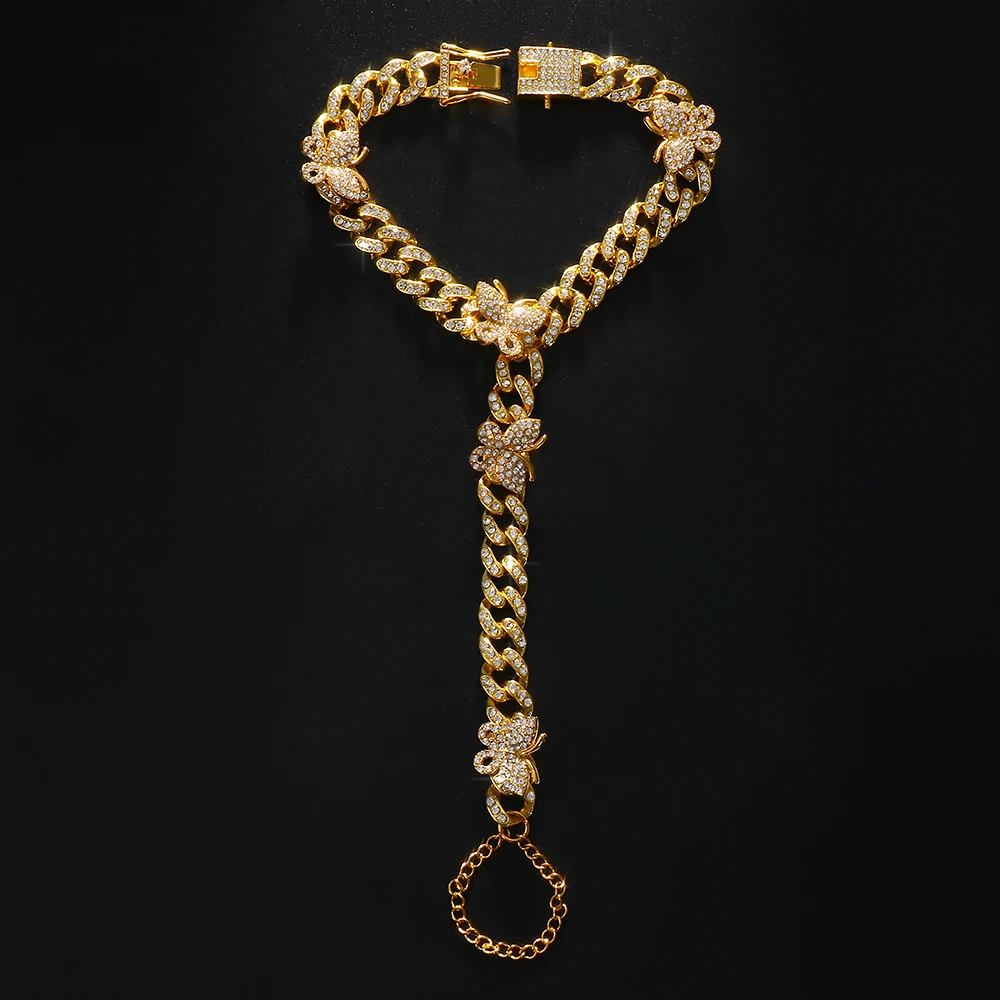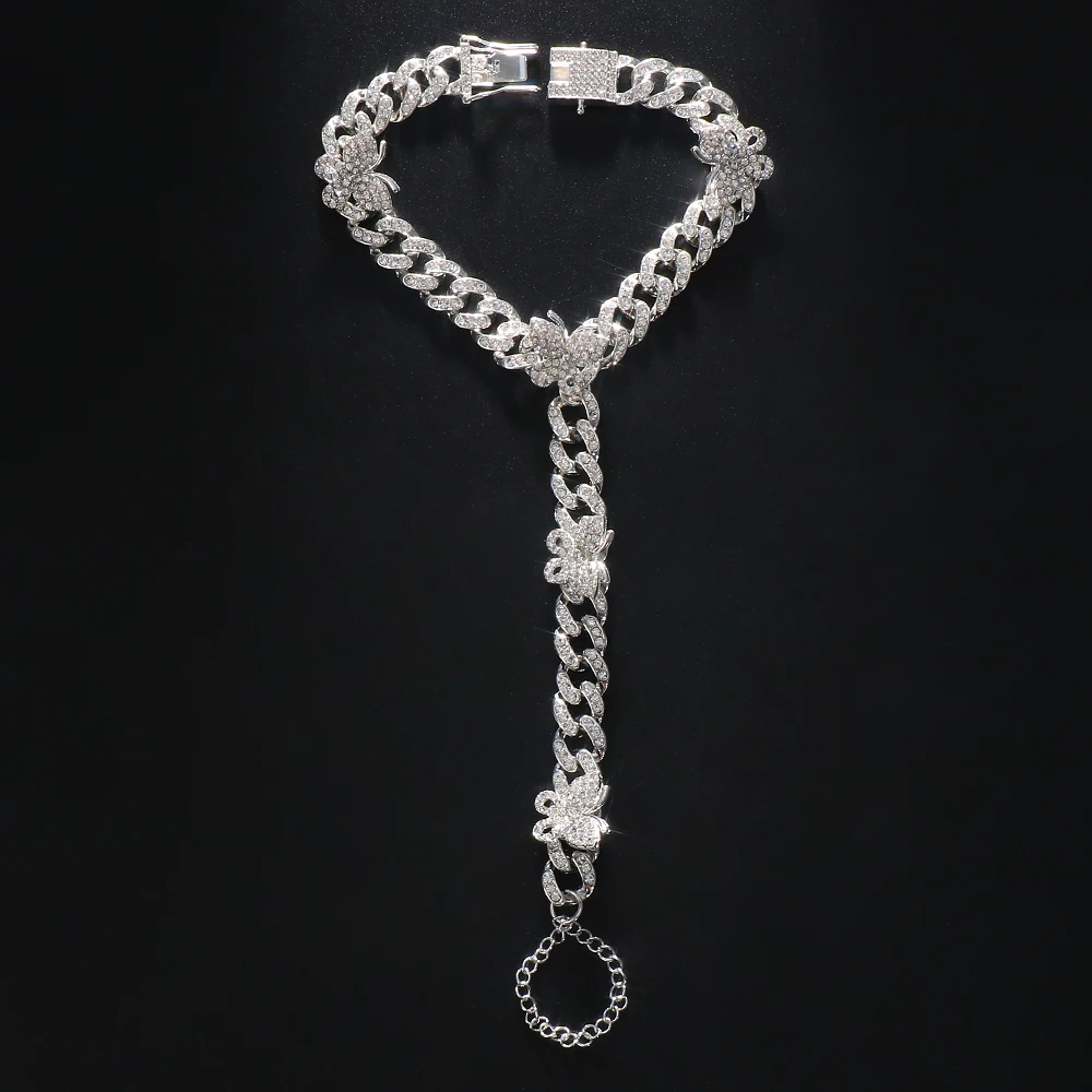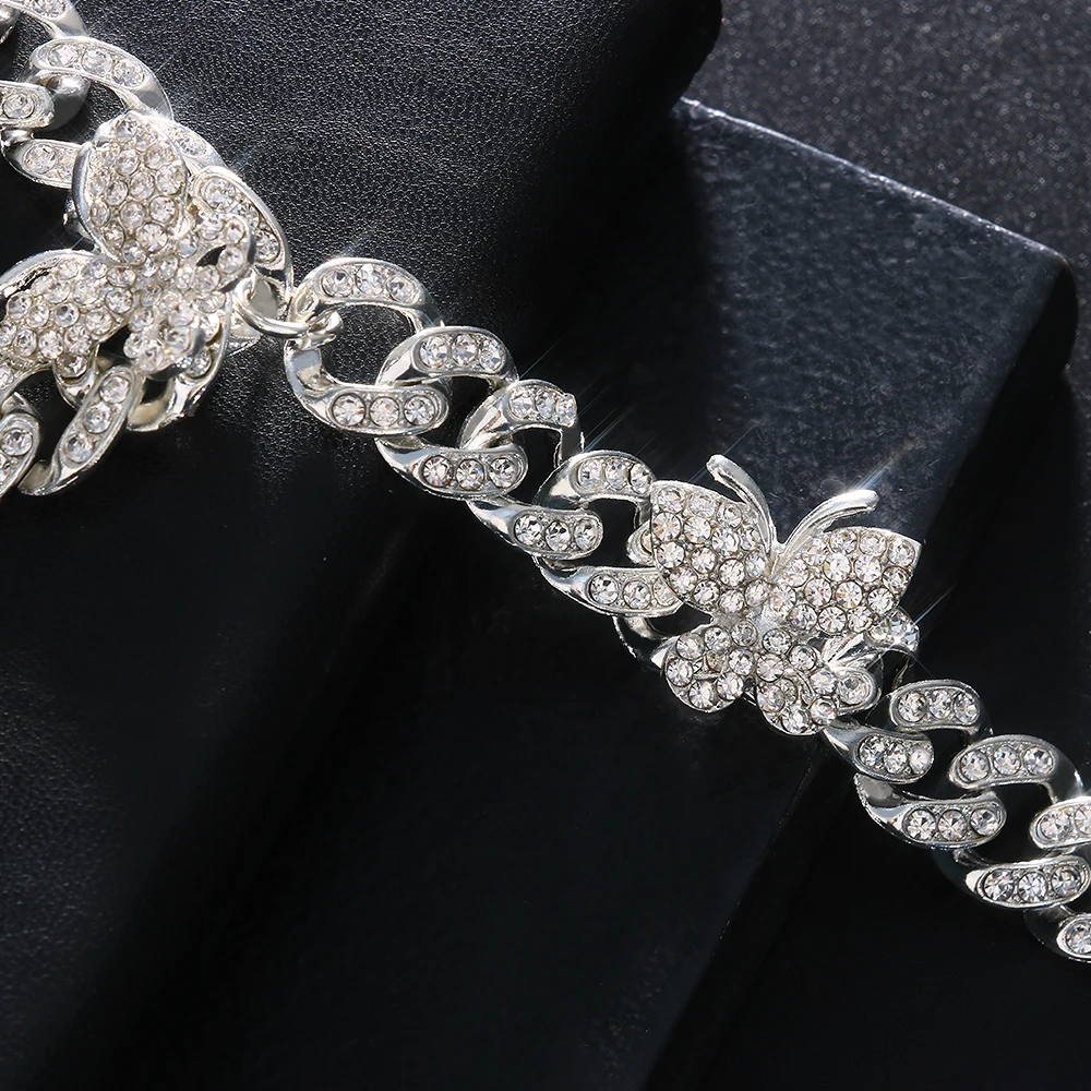 Rhinestone Crystal Butterfly Cuban Link Anklets for Women Barefoot Sandal Anklet Bracelet Foot Jewelry