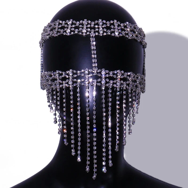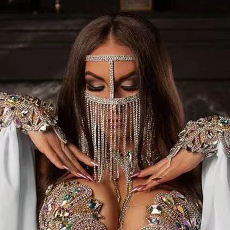 Rhinestone Crystal Tussle Mask Women Face Jewelry Halloween Accessories