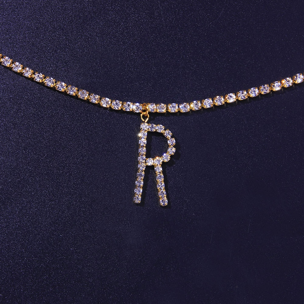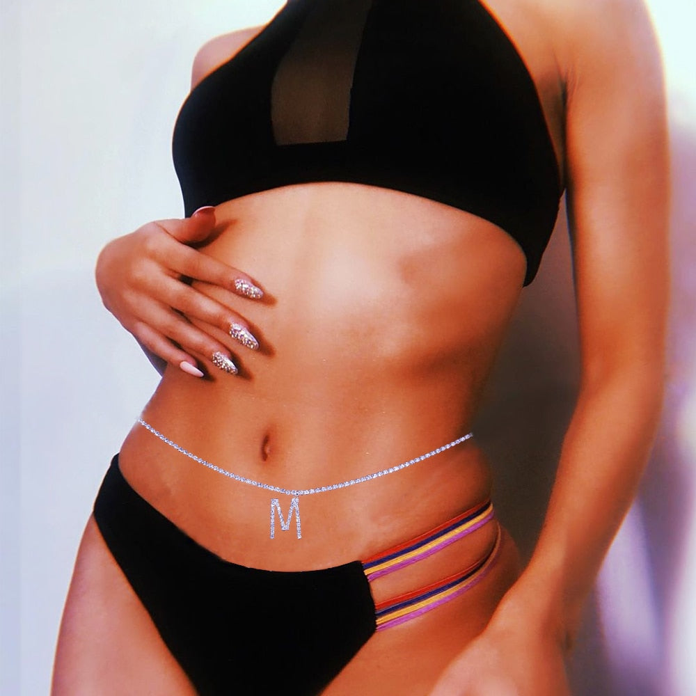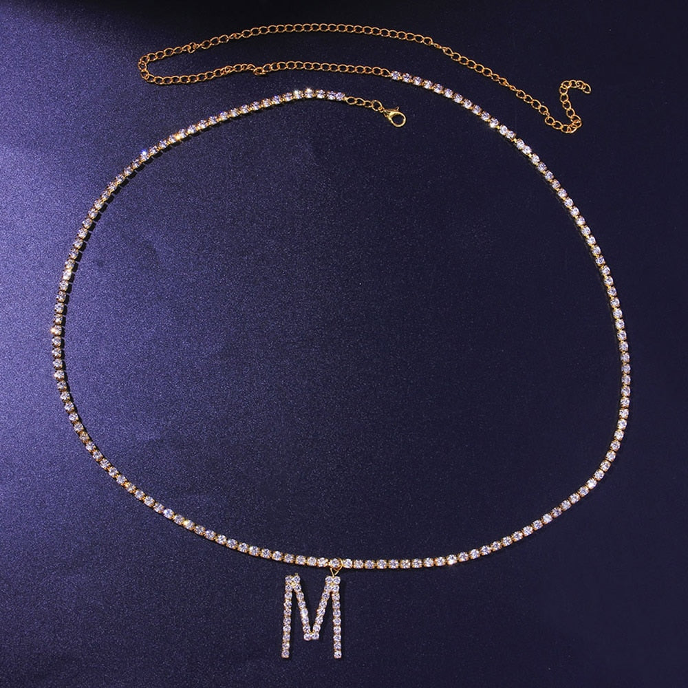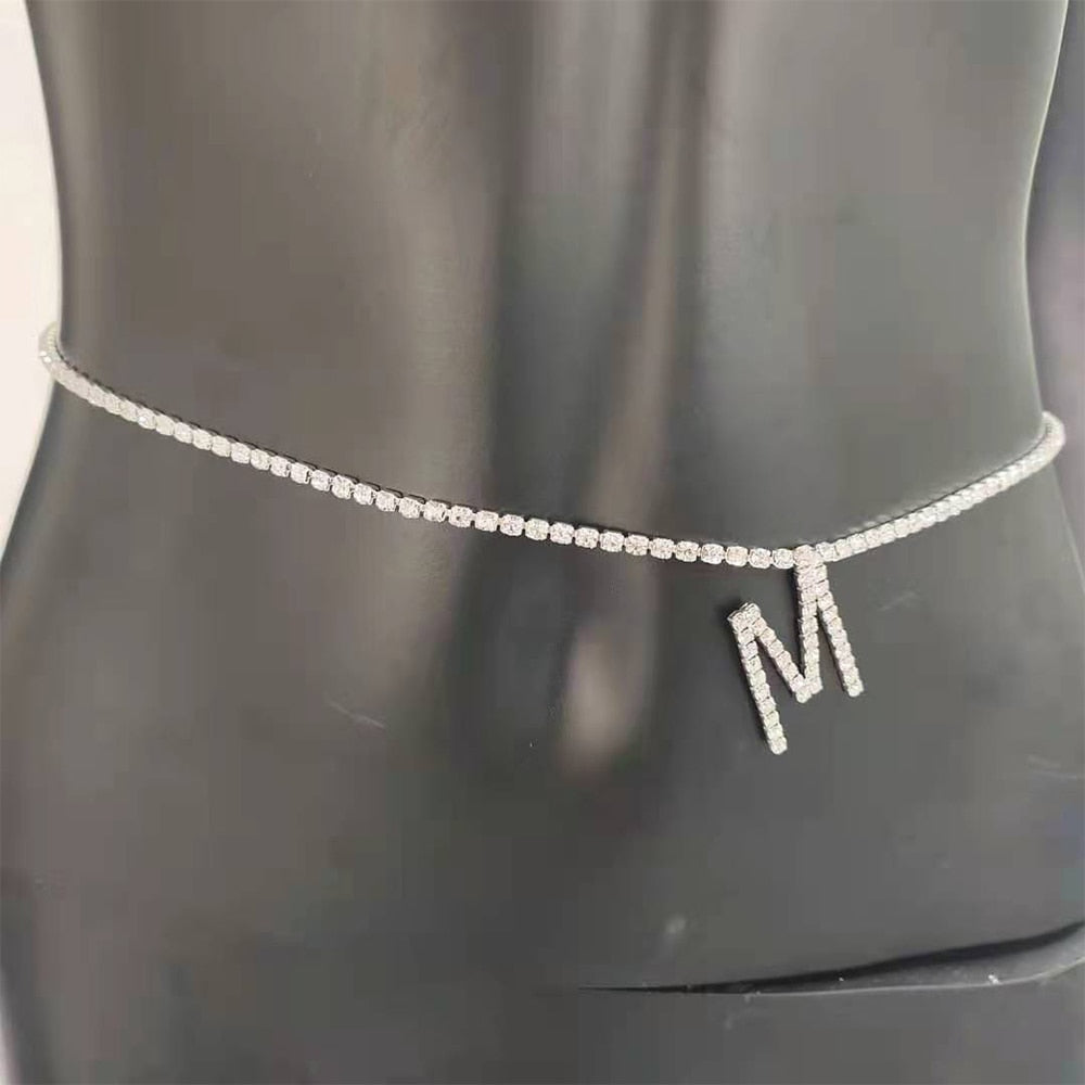 A-Z Alphabet Initial Waist Chain Women Belt Pendant Rhinestone Crystal Body Chain Jewelry