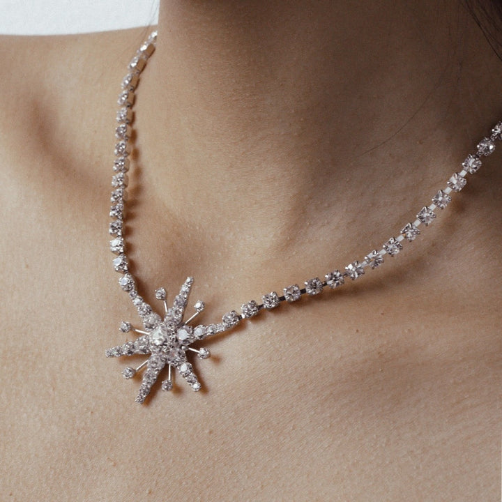 Bohemian Star Rhinestone Necklace Choker Jewelry for Women Tennis Chain Choker Wedding Crystal Necklace