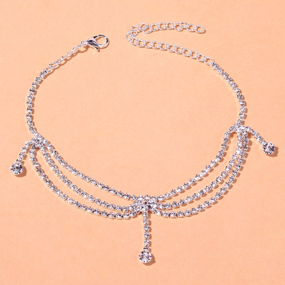 Boho Rhinestone Tennis Chain Anklet Foot Jewelry Chain Leg Anklet Bracelet