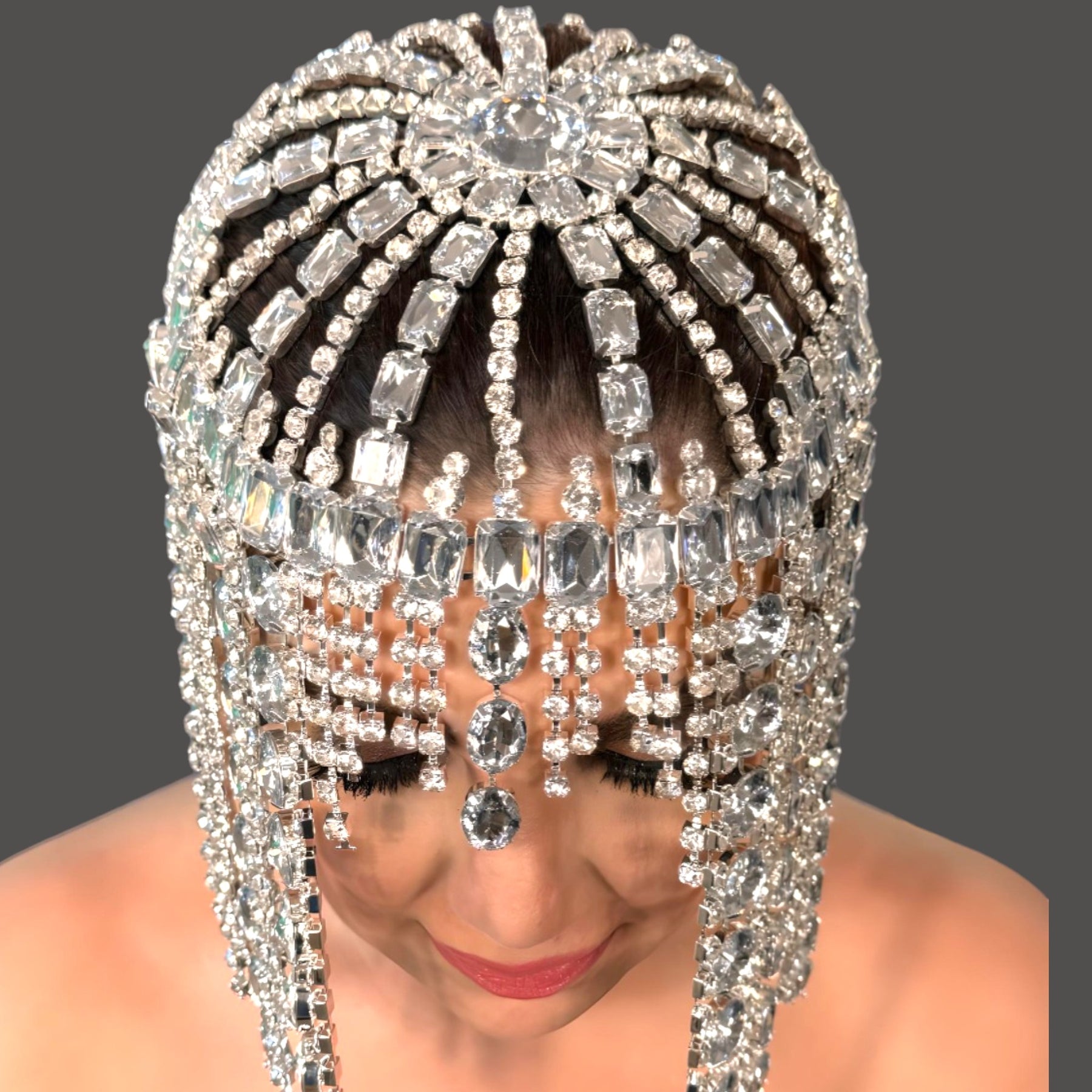 Rhinestone Crystal Hair Chain Headband Long Fringe Glitter Women Headpiece