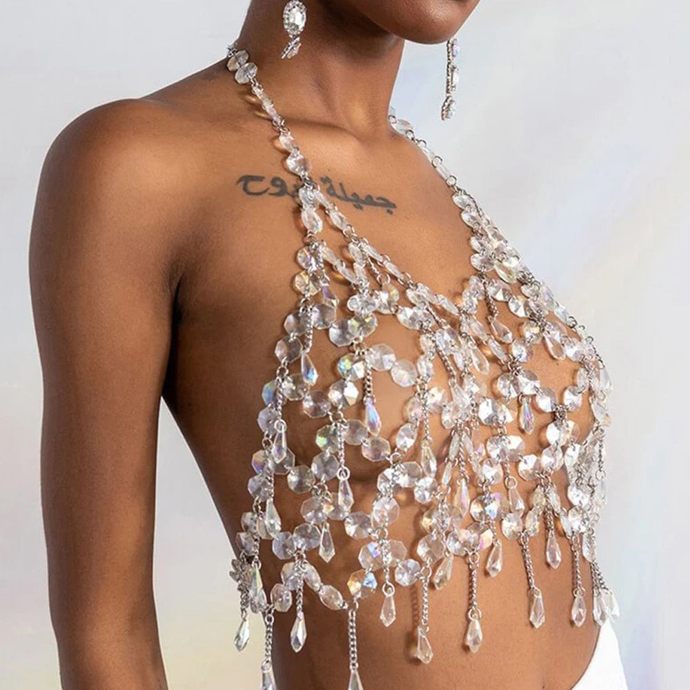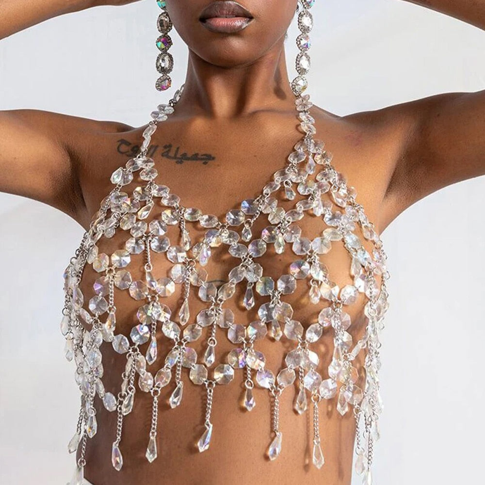 Hollow Bling Crystal Bra Chain Lingerie for Women Rave Accessories Bikini Body Chain Dress Necklace Party Jewelry