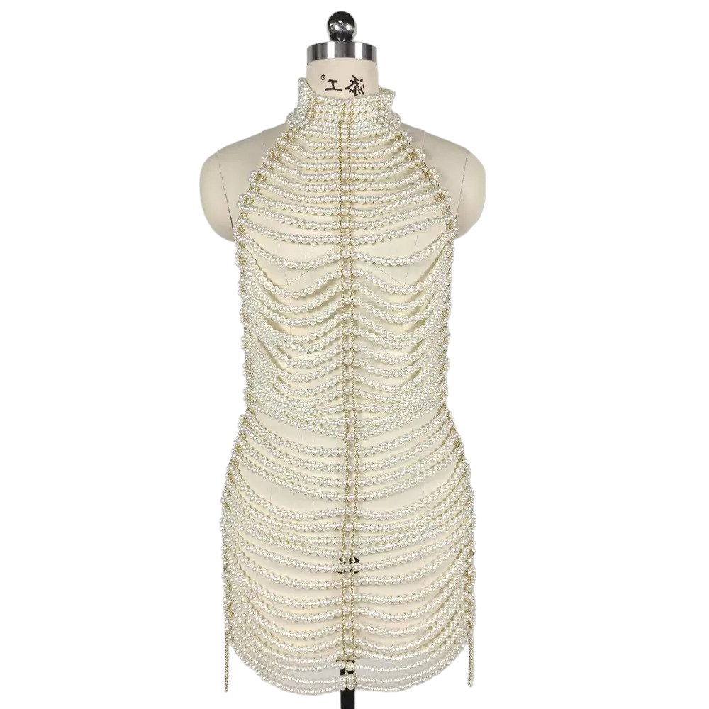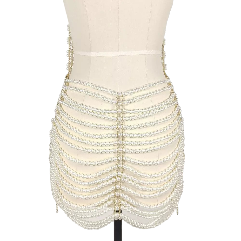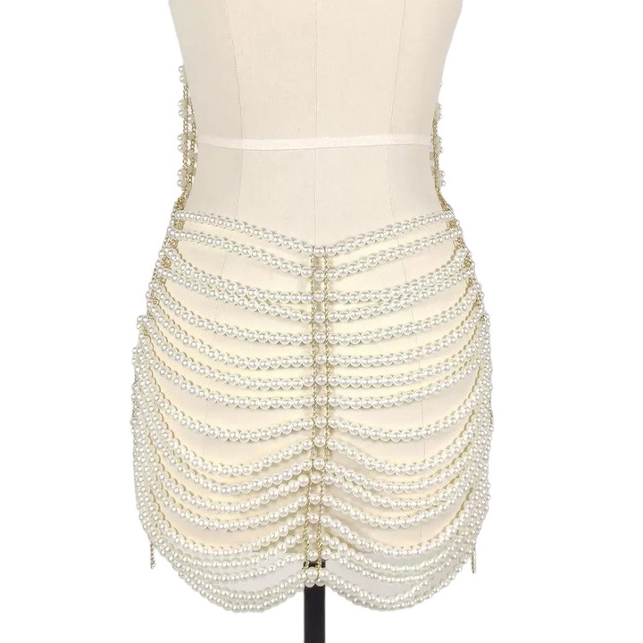 In conclusion, the Imitation Pearl Sexy Bodysuit Skirt is more than just body jewelry; it's a representation of elegance and allure. Its history reflects the ever-evolving world of fashion, where accessories like this continue to captivate fashion enthusiasts. Whether worn at a party, holiday celebration, or wedding, this bodysuit skirt has firmly established itself as a symbol of sensuality and style.