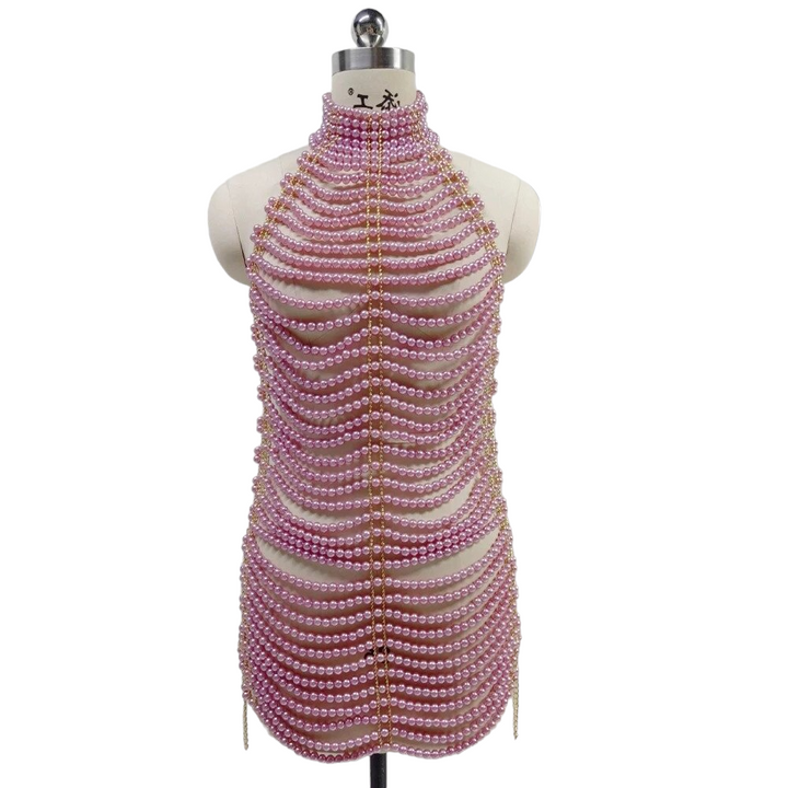 The Imitation Pearl Sexy Bodysuit Skirt is a captivating piece of body jewelry that seamlessly blends fashion and sensuality. Originating from China (CN), this accessory carries a rich history of elegance and style, particularly for special occasions and intimate moments.