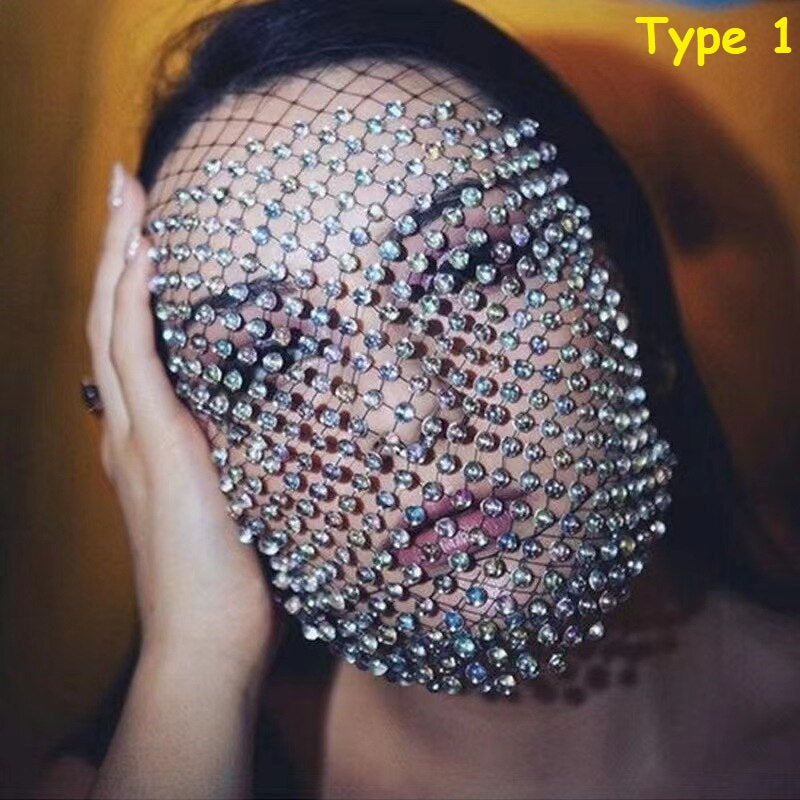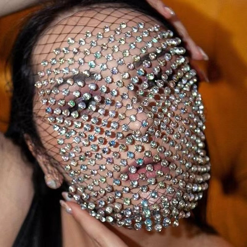 Mesh Rhinestone Face Jewelry Mask Bling Wedding Party Veil Women Full Crystal Face Shield Face Mask