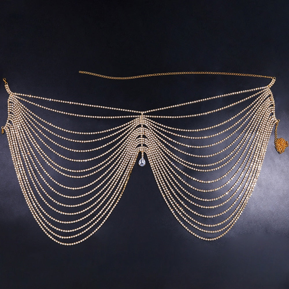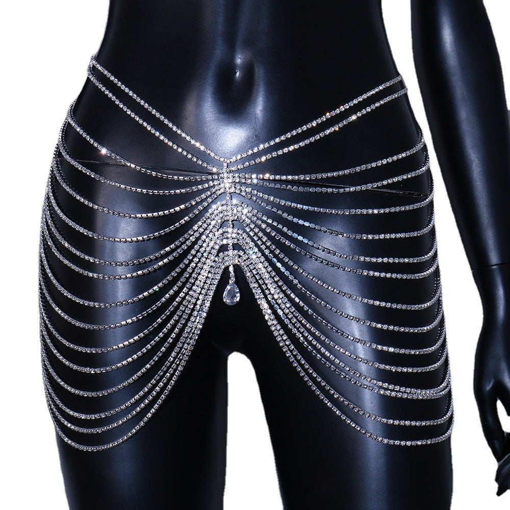 Multilayer Rhinestone Hip Chain Lingerie Women Crystal Waist Chain Body Jewelry Body Chain