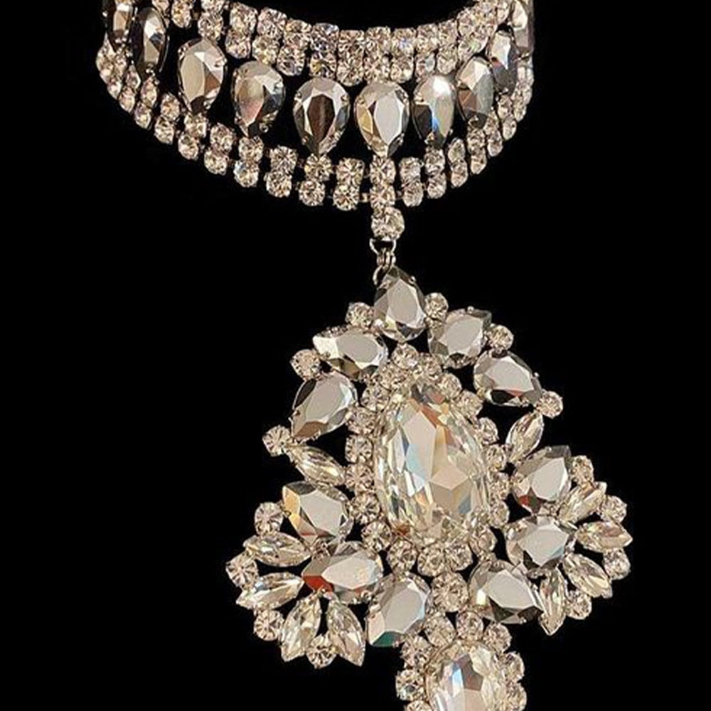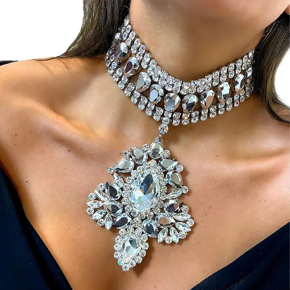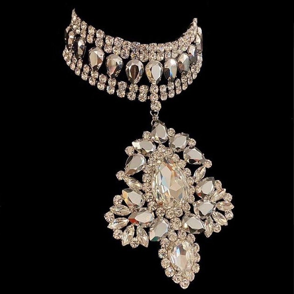 Pendant Choker Necklace Rhinestone Crystal for Women One Piece Chunky Necklace Chocker Jewelry