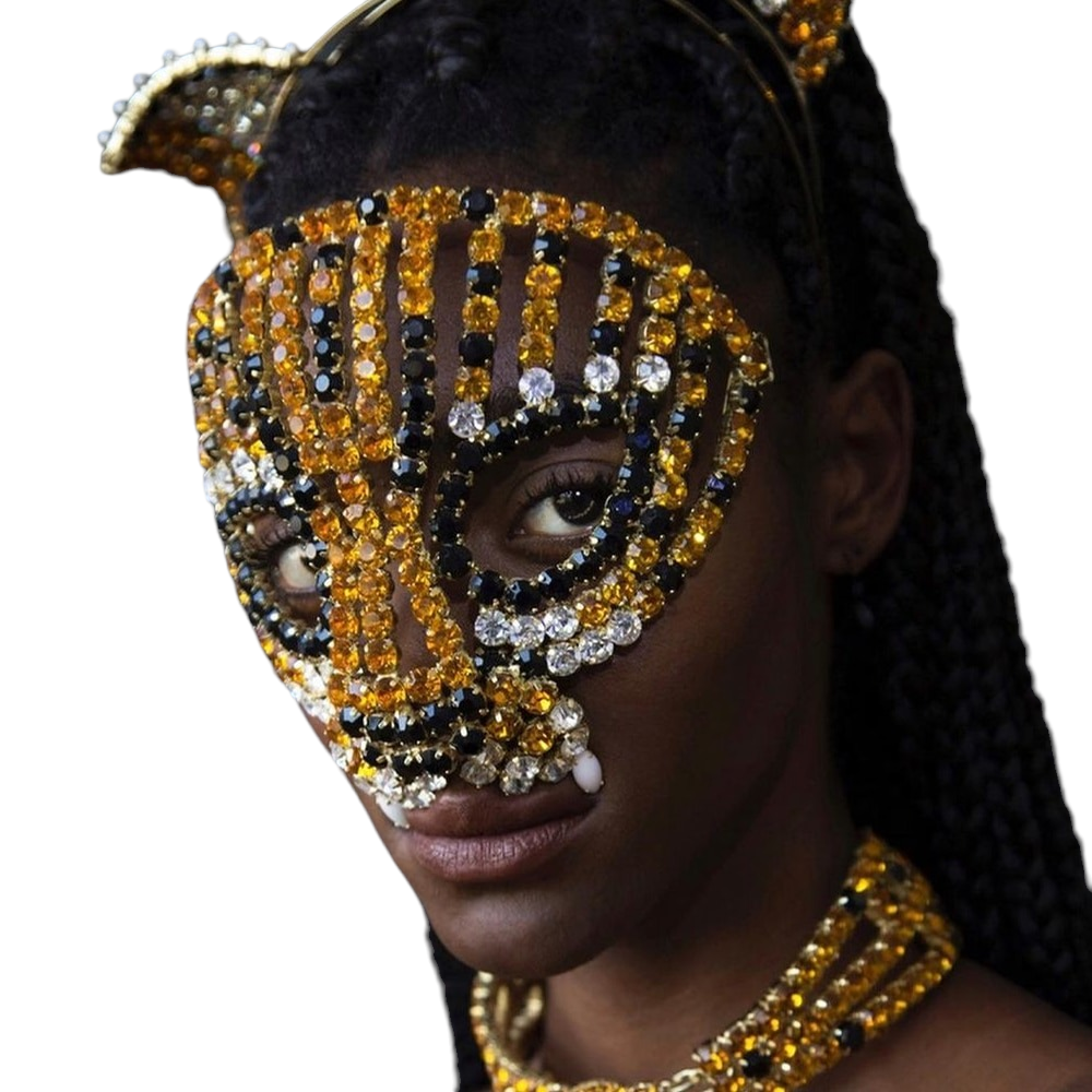 Rhinestone Halloween Mask Chain Cheetah for Men Women Masquerade Decoration Large Crystal Face Veil Party Jewelry