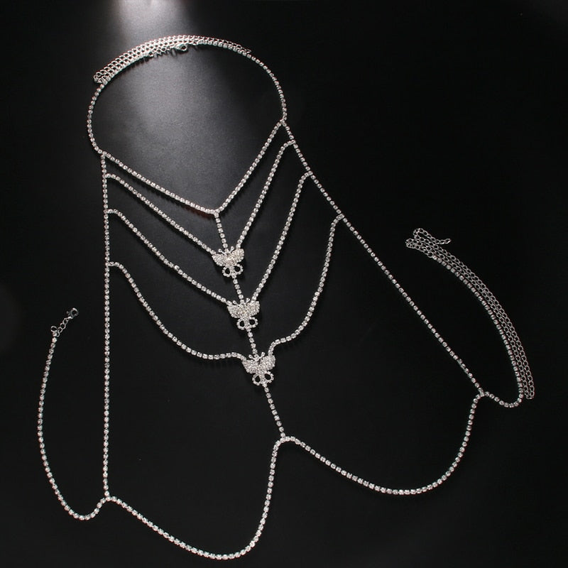 Sexy Multilayer Rhinestone Butterfly Bra Chain for Women Fashion Body Chain Bra Necklace Bikini Harness Party Jewelry