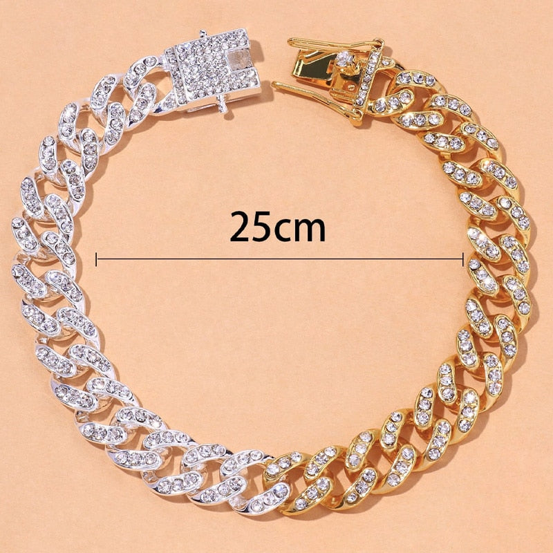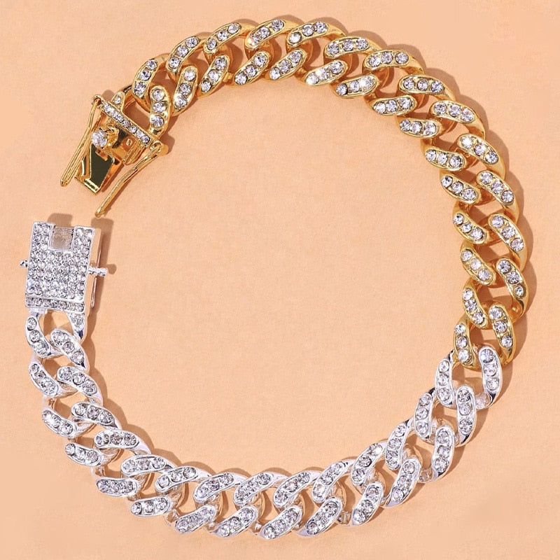 Silver Color Golden Paneled Cuban Link Anklet Rhinestone Womens Jewelry Miami Beach Sandals Foot Chain Summer Bracelet