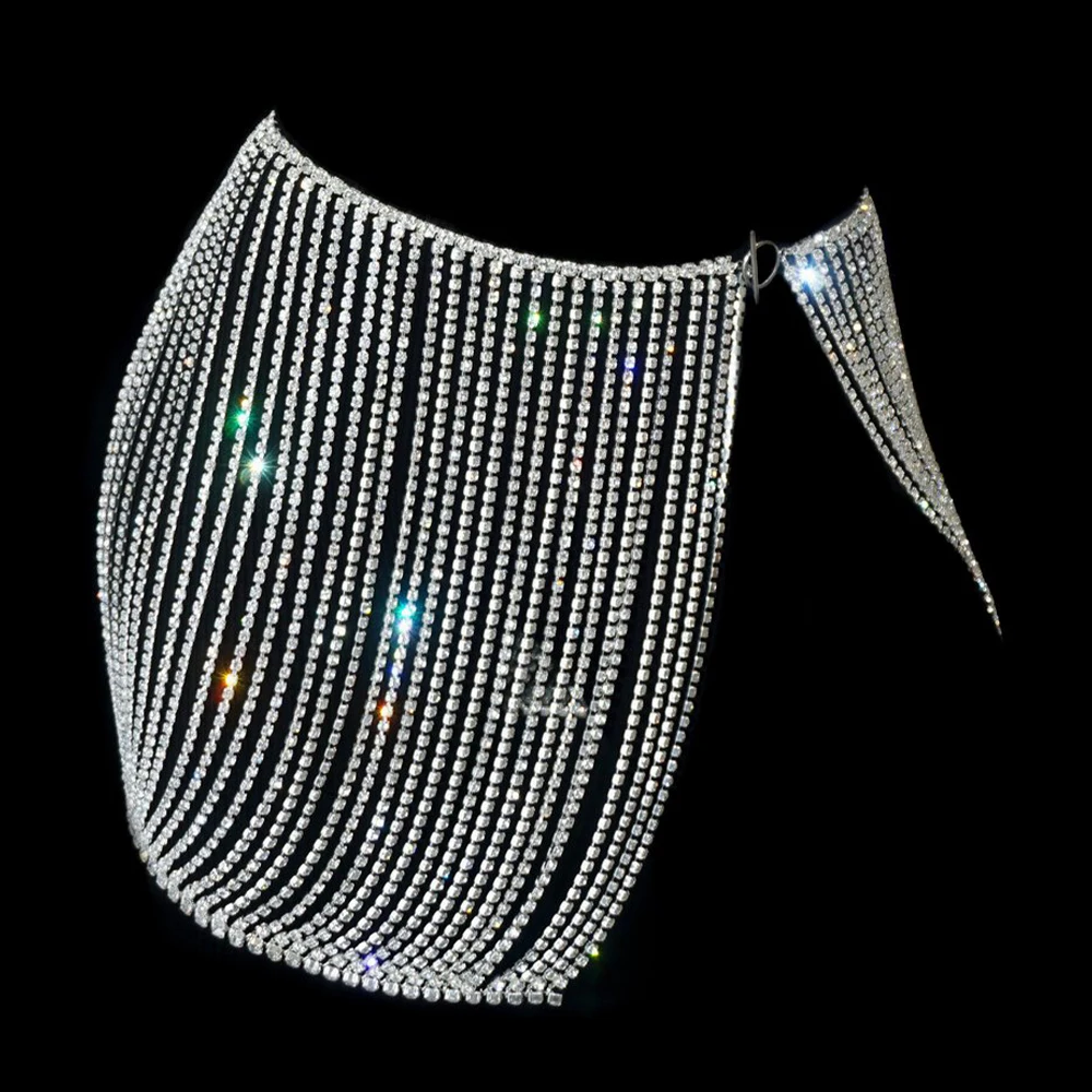 Sparkly Body Chain Crystal Package Hip Skirt for Women Cover Up Bikini Rhinestone Short Skirt Rave Outfits