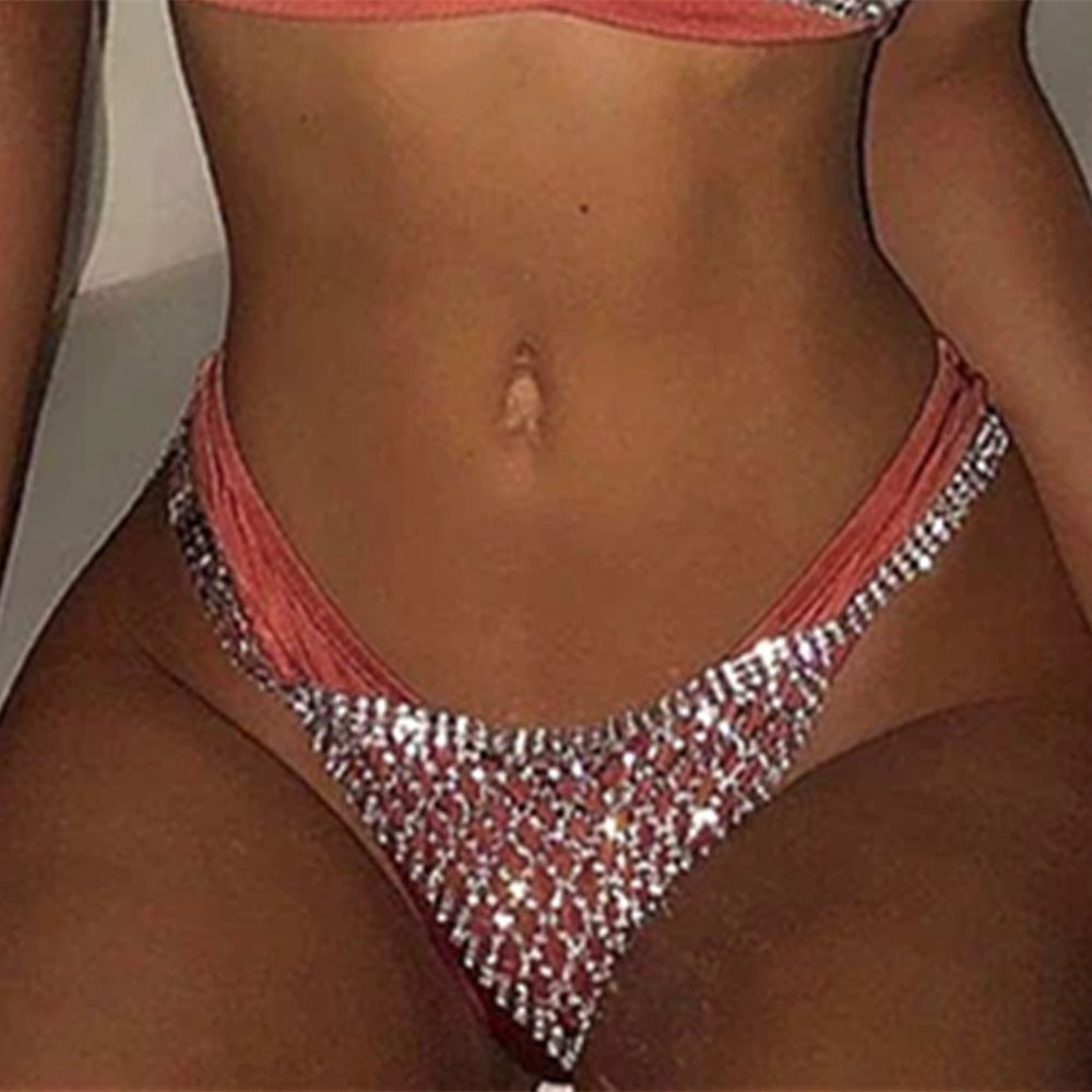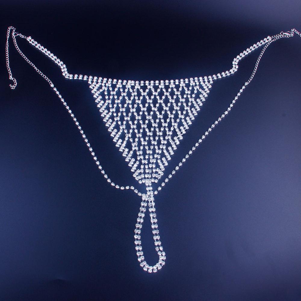 Mesh Rhinestone Body Chain Jewelry Sexy Bikini Crystal Underwear Panties