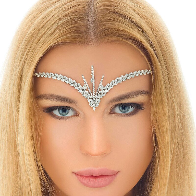 Zircon Headband Wedding Women Indian Hair Tiaras Boho Forehead Bride Accessories Head Jewelry