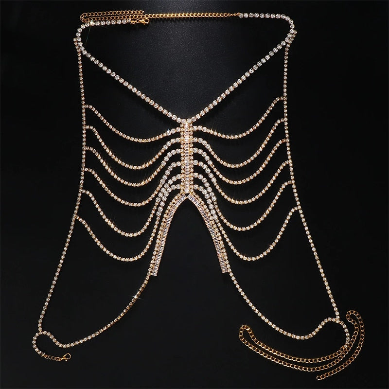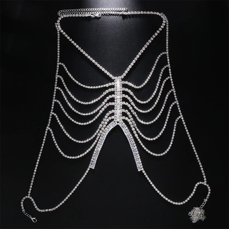 Zircon Multi Layer Hollow Bra Necklace Chest Chain Body Jewelry Rhinestone Harness Bikini Accessories