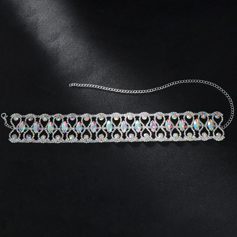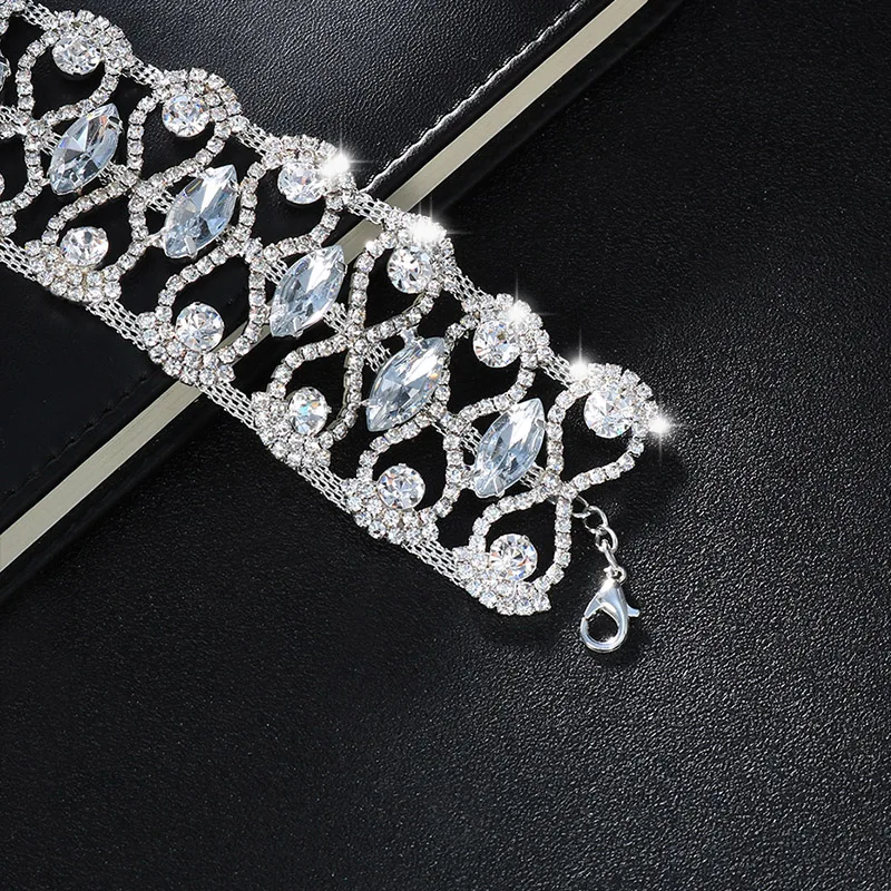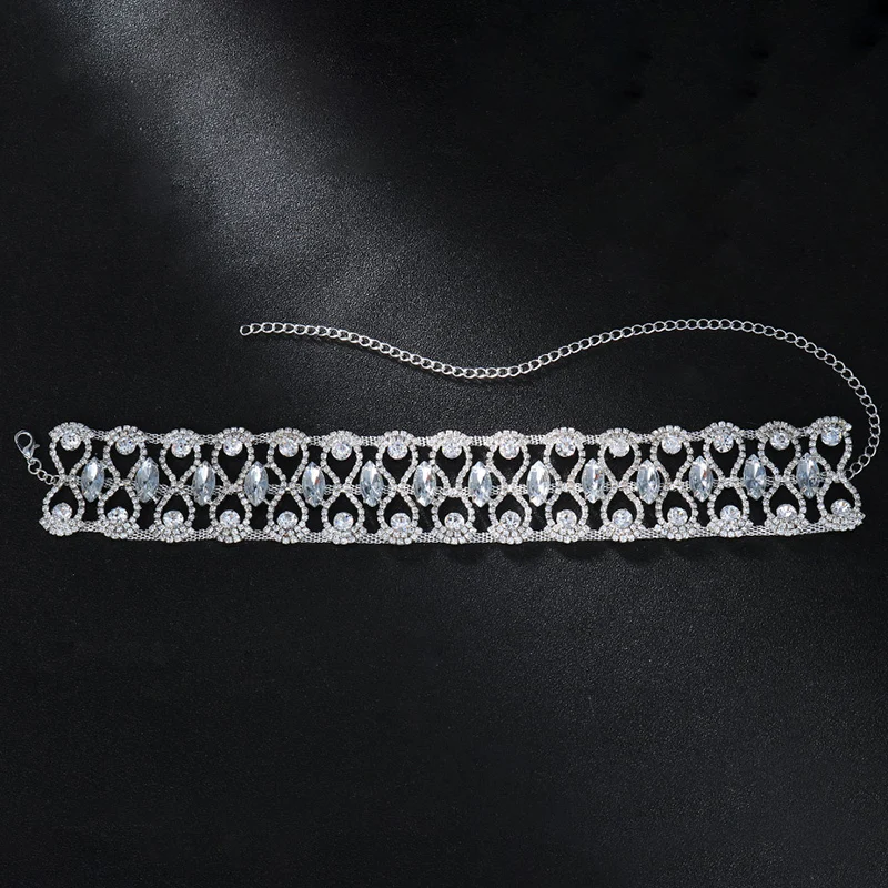 Rhinestone Flower Necklace Jewelry for Women Punk Choker Wedding Necklace Chain