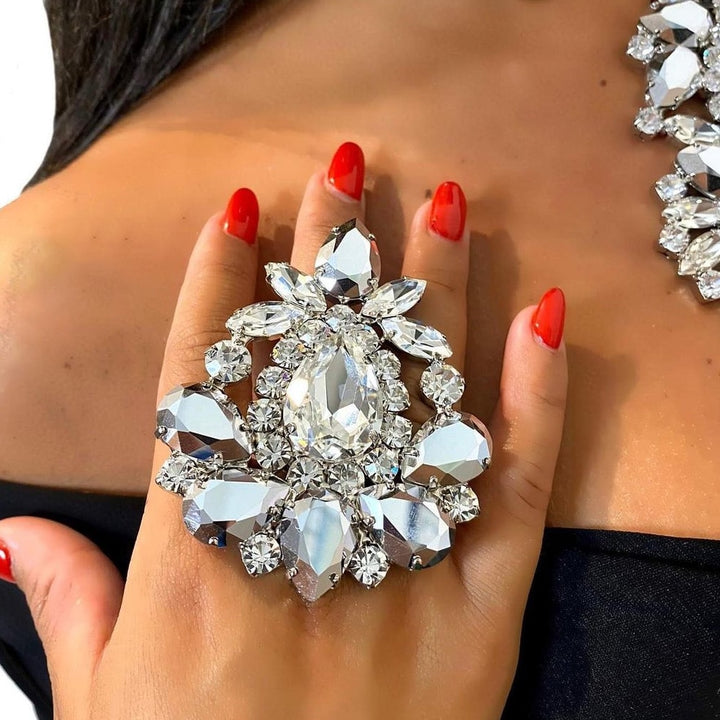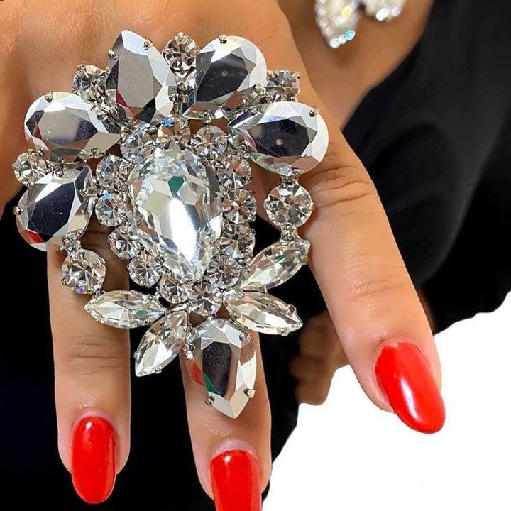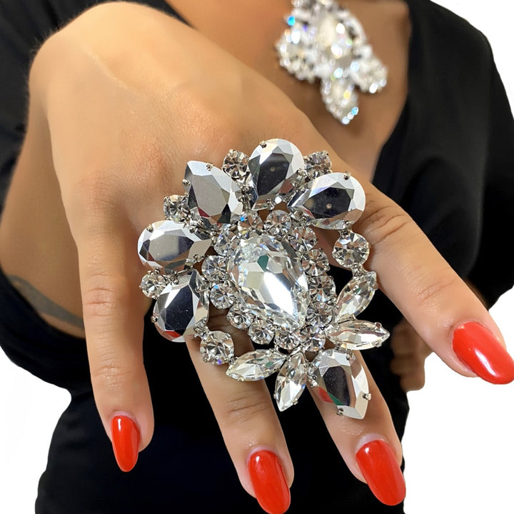Crystal Open Rings Adjustable Jewelry Women Wedding Rhinestone Big Gemstone Finger Ring Accessories