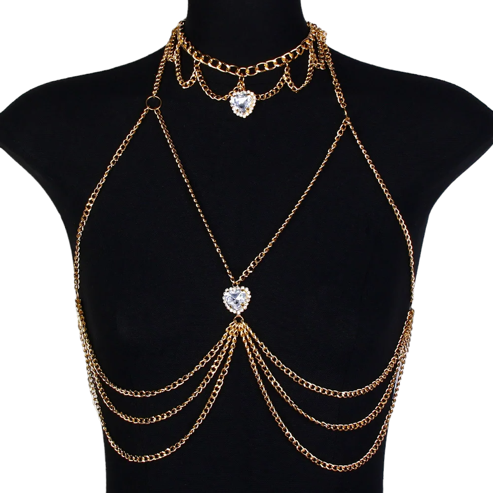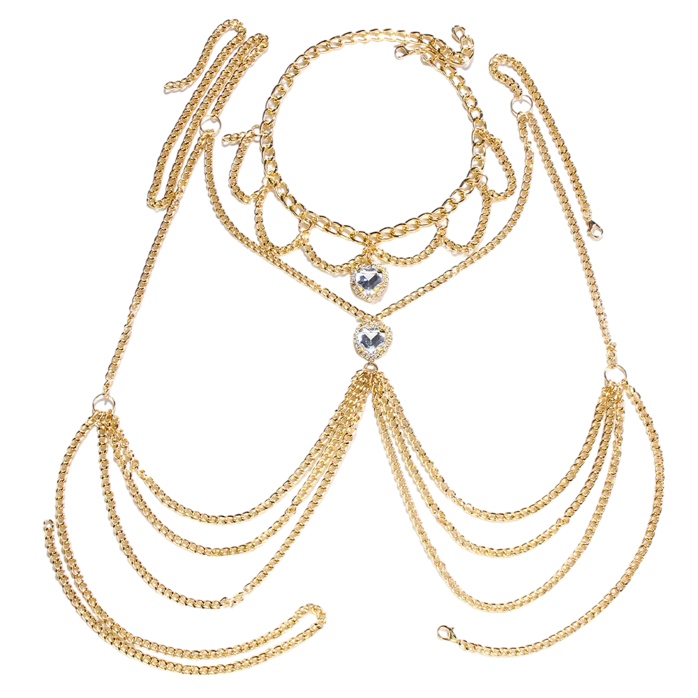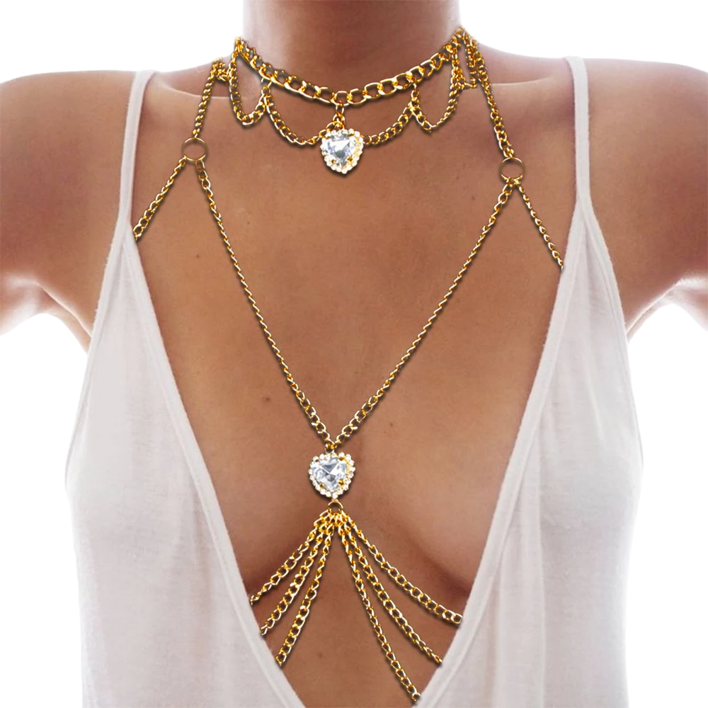 Heart Hollow Chest Chain Choker Rhinestone Body Chain Party Nightclub Body Jewelry Accessories Gifts