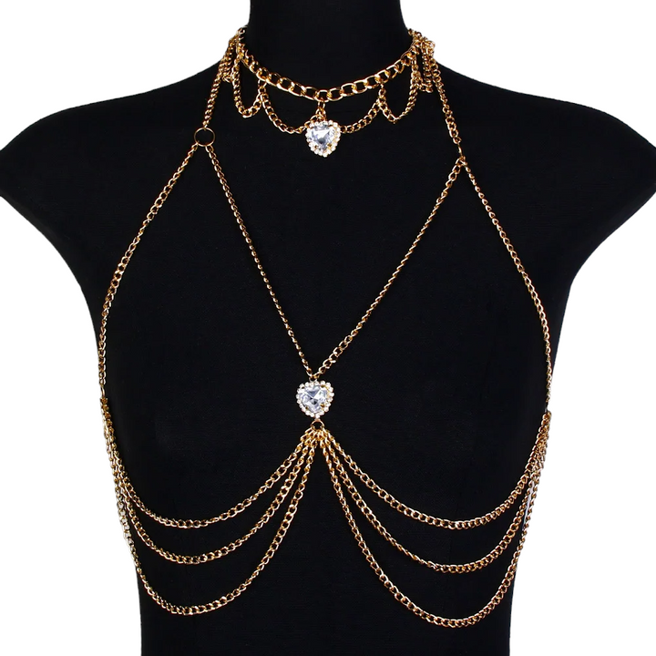 In conclusion, the Heart Hollow Chest Chain is not just an accessory; it's a representation of contemporary elegance and bold style. Its history mirrors the dynamic and ever-evolving world of fashion, where accessories like this continue to captivate fashion enthusiasts. Whether worn to make a statement or to add a subtle touch of sophistication, this chest chain has firmly established itself as a symbol of modernity and fashion-forward design.