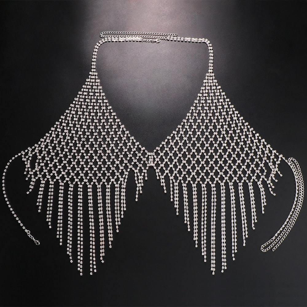 Name: Mesh Harness Rhinestone Tassel Bra Chain