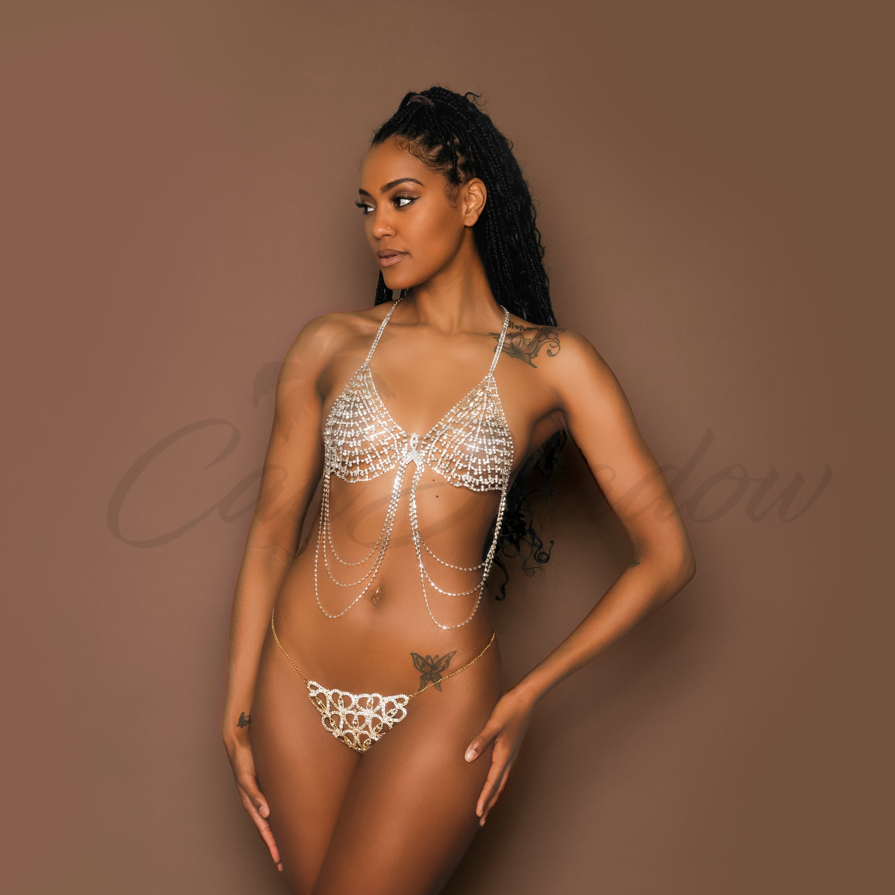 Chest Chain Jewelry Accessories Women Bling Rave Body Chain Mesh Bra Body Jewelry