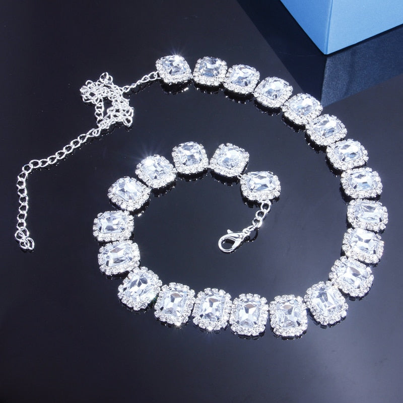 Crystal Rhinestone Choker Necklace Men Women Bling Big Necklaces Unisex Jewelry