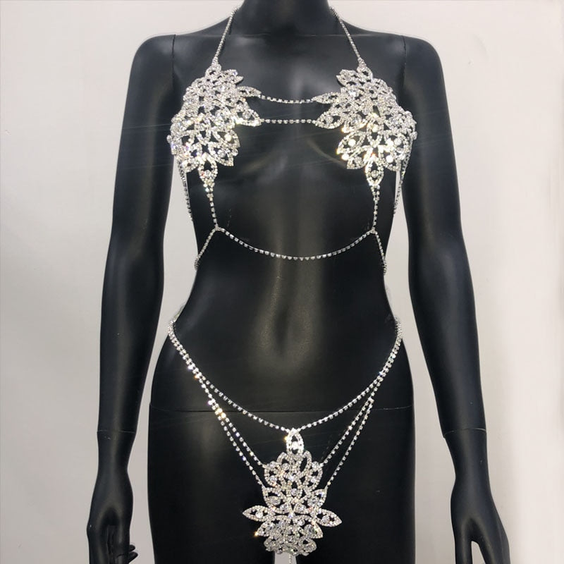 Crystal Shiny Rhinestone Sexy Chain Jewelry Bra Thong Body Chain Women Underwear