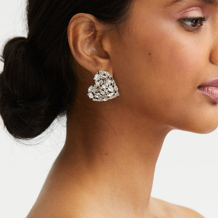 Geometric Crystal Heart Clip Earrings Wedding Jewelry Women Bridal Gifts Rhinestone Ear Clip Earrings No Piercing