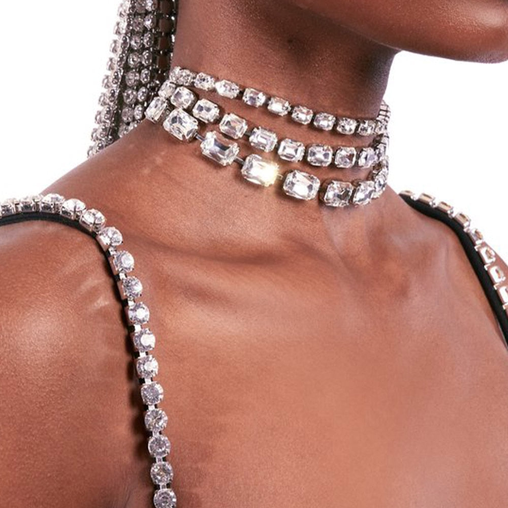 Large Rhinestone Necklace Jewelry for Women Multi Row Crystal Collar Choker Necklace