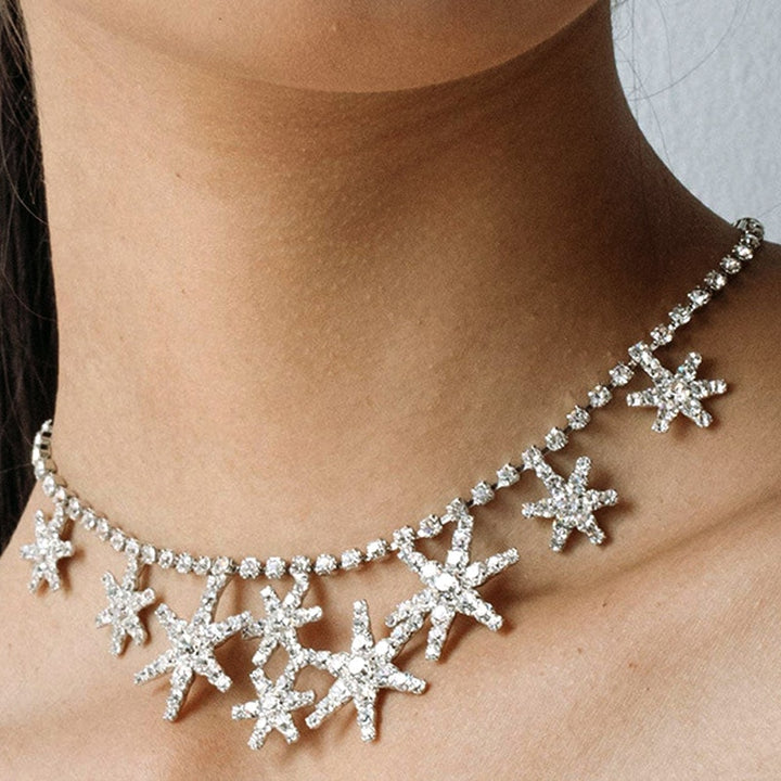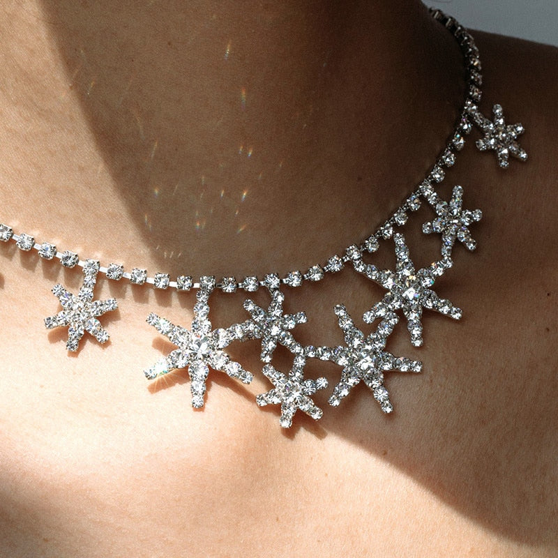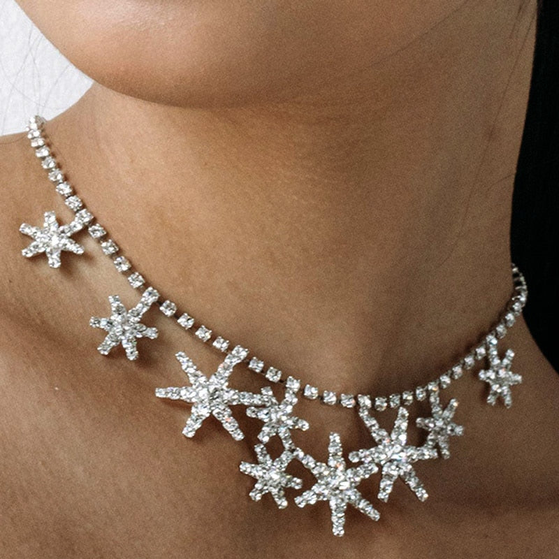 Multi Six Manifold Star Rhinestone Choker Necklace for Women Crystal Star Necklace Choker Collar Jewelry Christmas Gift