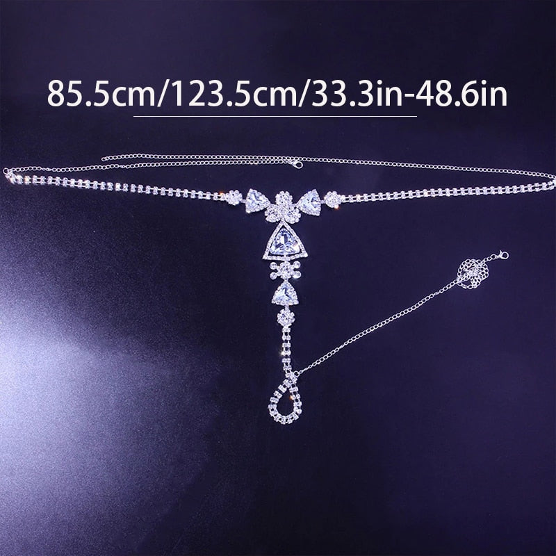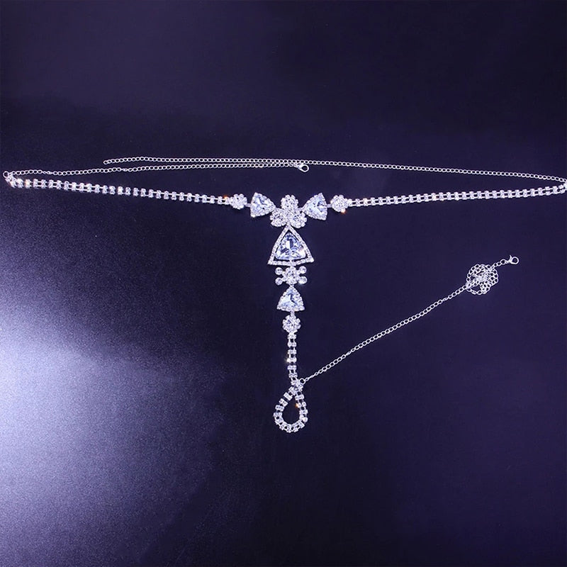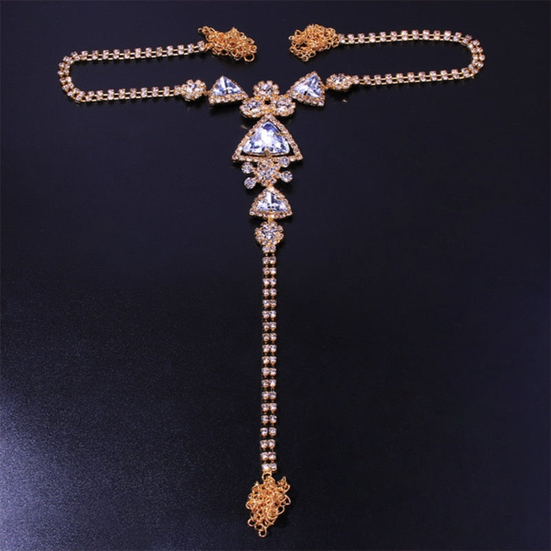Rhinestone Crystal Triangle Panties Women Crotchless Thong Rave Harness Waist Chain Flower Panty Body Jewelry Bikini