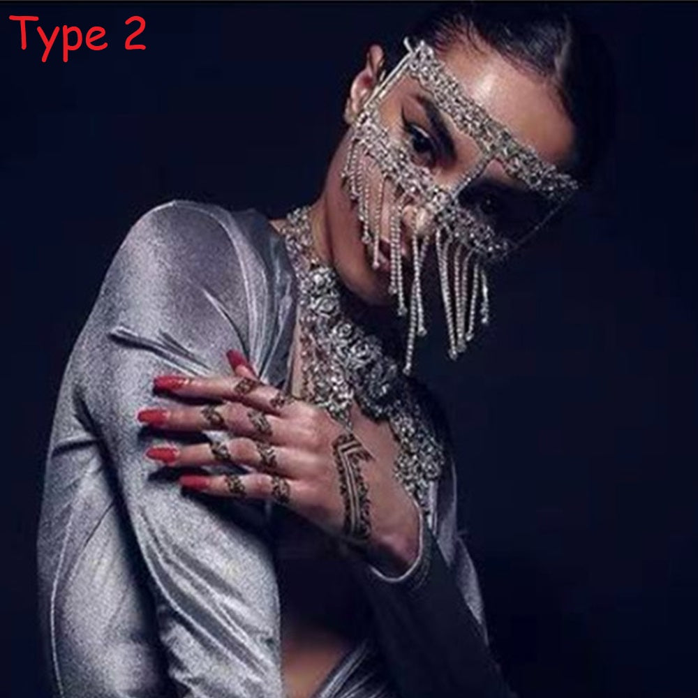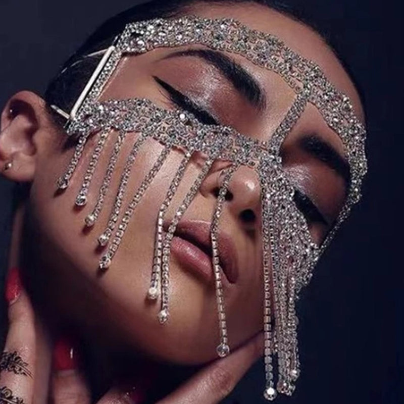 Rhinestone Crystal Tussle Mask Women Face Jewelry Halloween Accessories