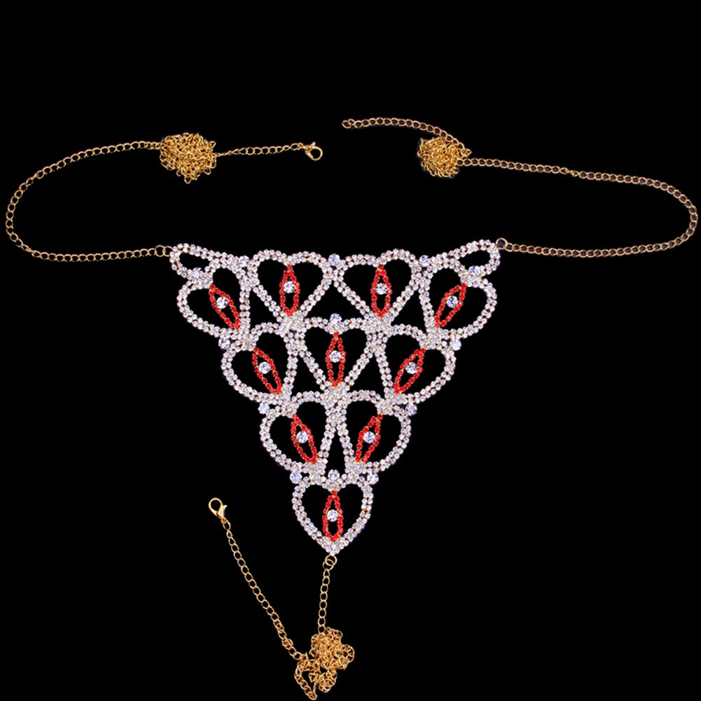 Rhinestone Heart Bikini Jewelry Lingerie Set Bling Bra Thong Crystal Body Chain