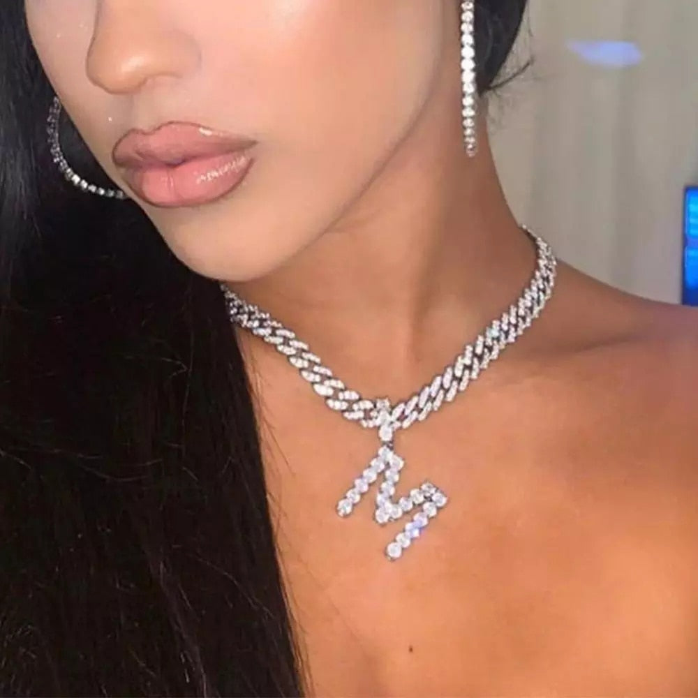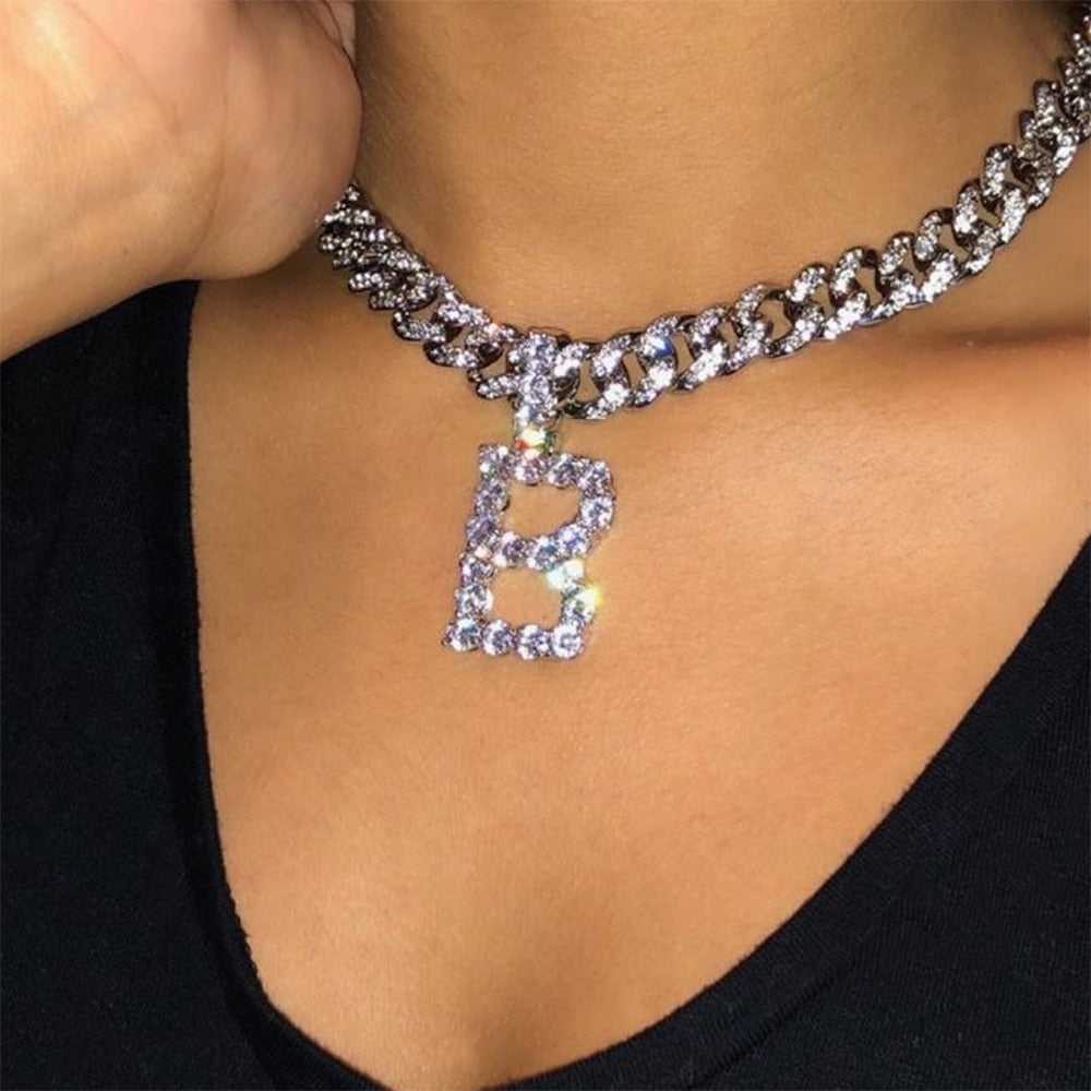 A-Z Alphabet Initial Letter Pendant Necklace Curb Cuban Women Choker