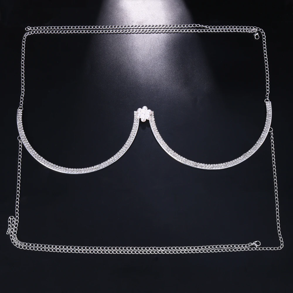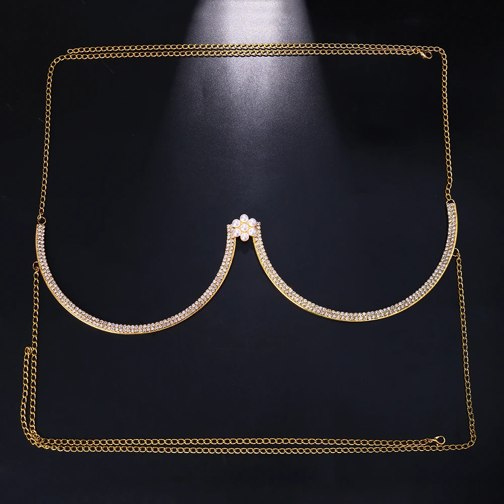 Bead Flower Chest Bracket Bra Underwear Jewelry Women Bikini Accessories Bling Rhinestone Body Jewelry