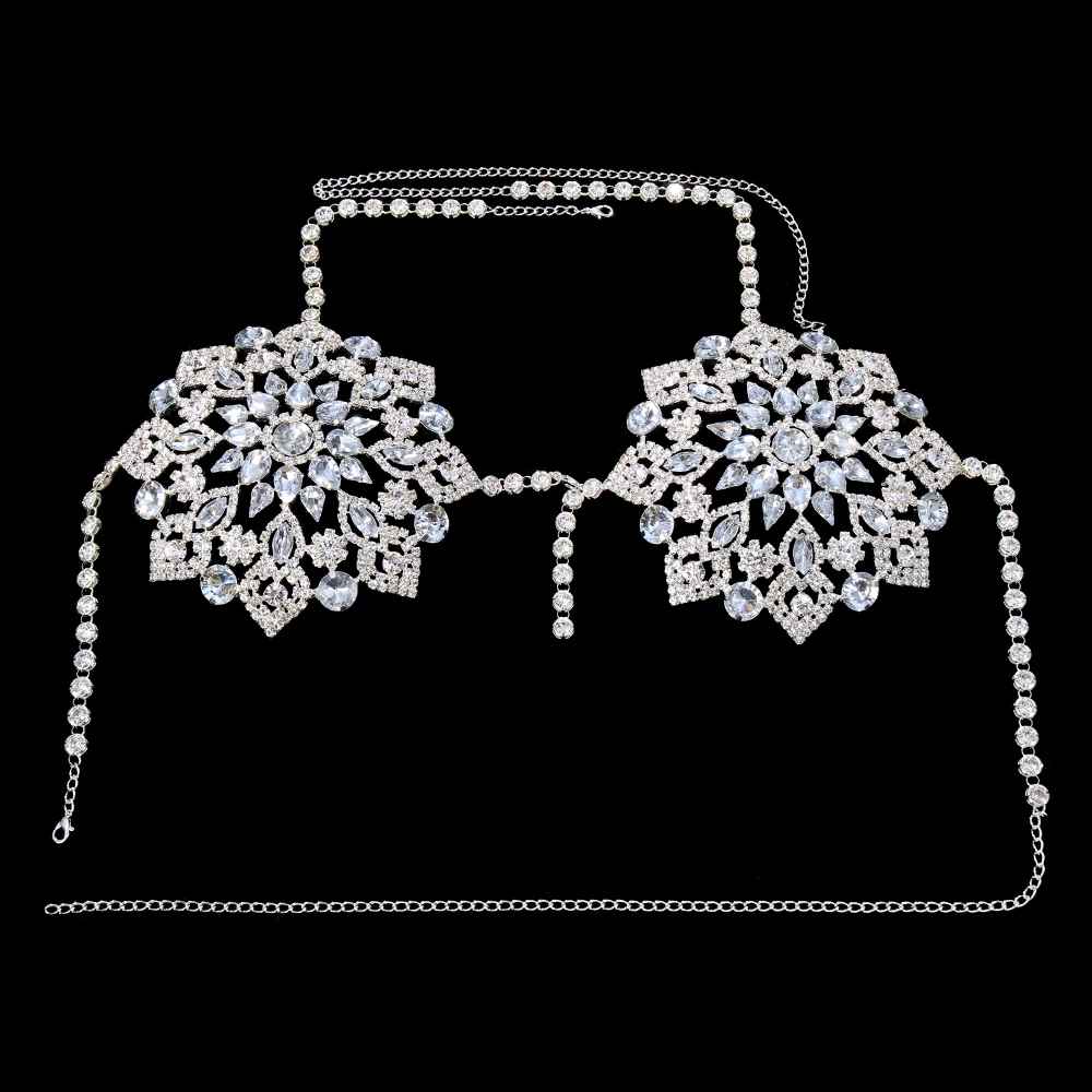 Big Crystal Bikini Top Flower Shape Lingerie Chain Ladies Bling Rhinestone Bra Chain Chest Bracket Body Jewelry