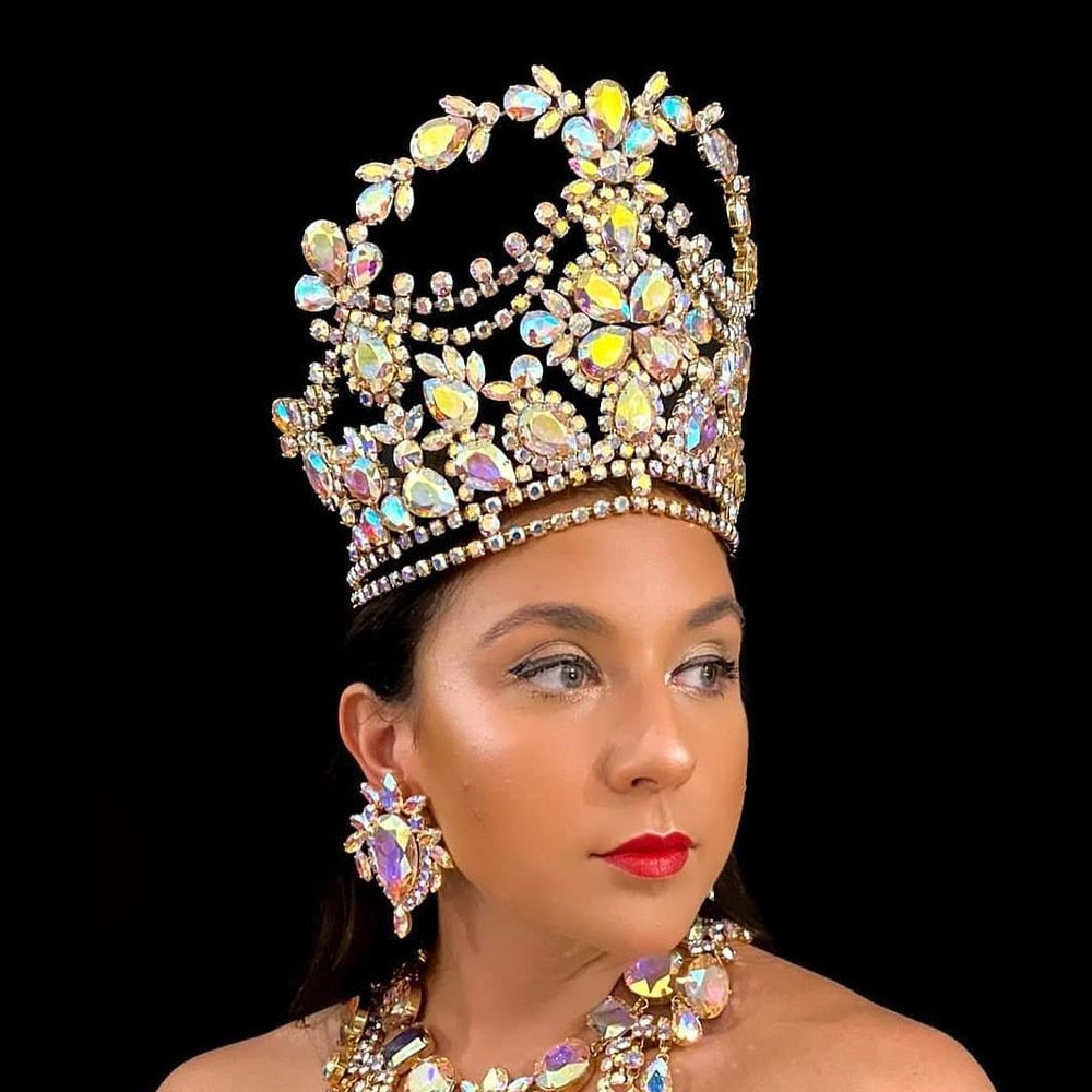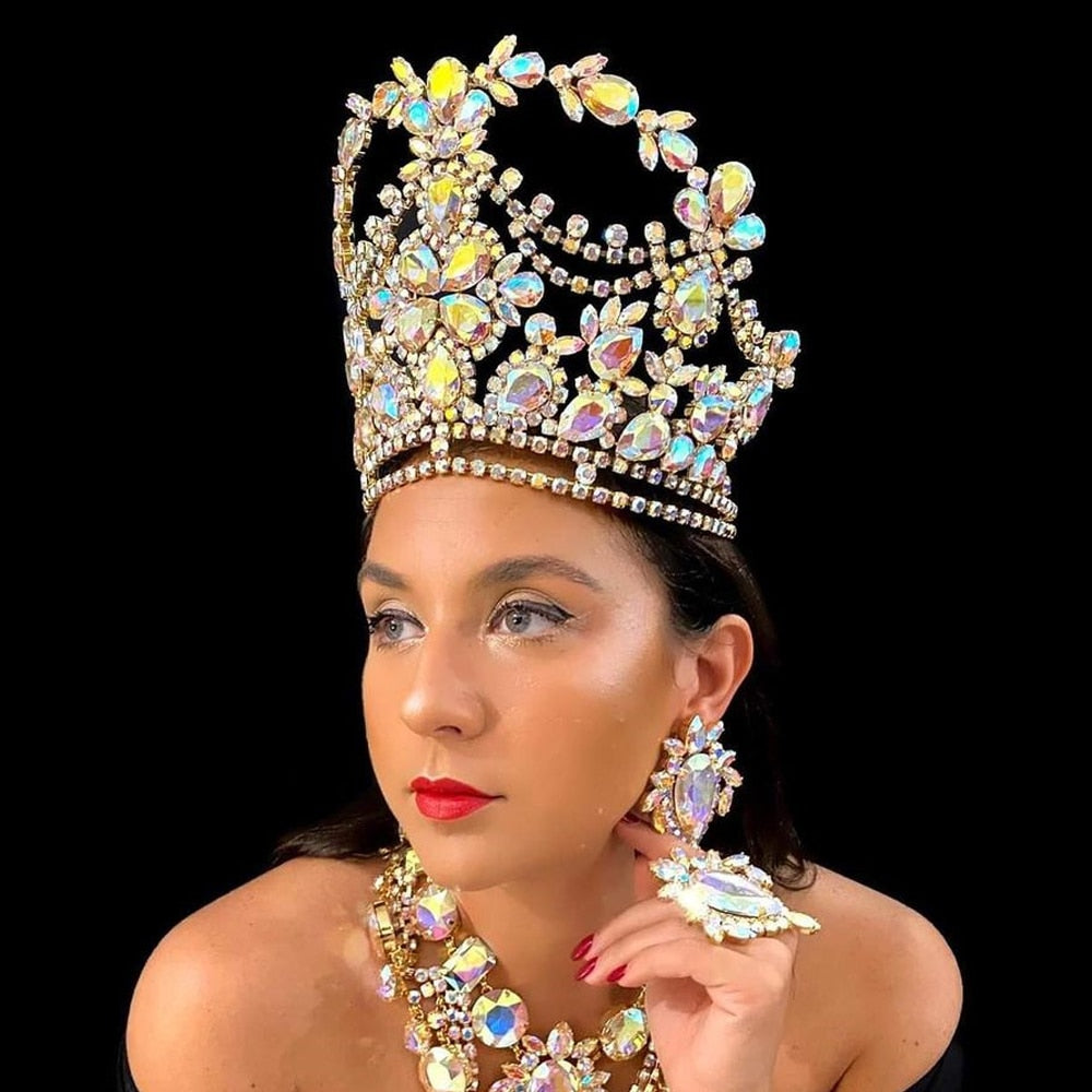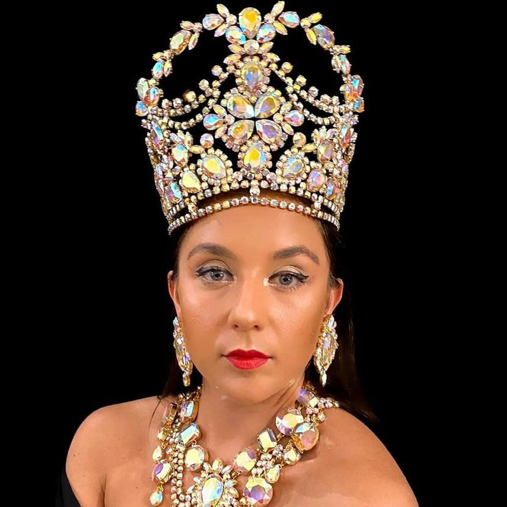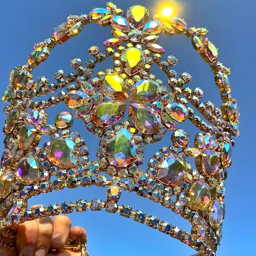 Colorful Rhinestone Large Crown Tiara Wedding Hair Accessories Bridal Headpiece Big Crystal Queen Crown Halloween Crown