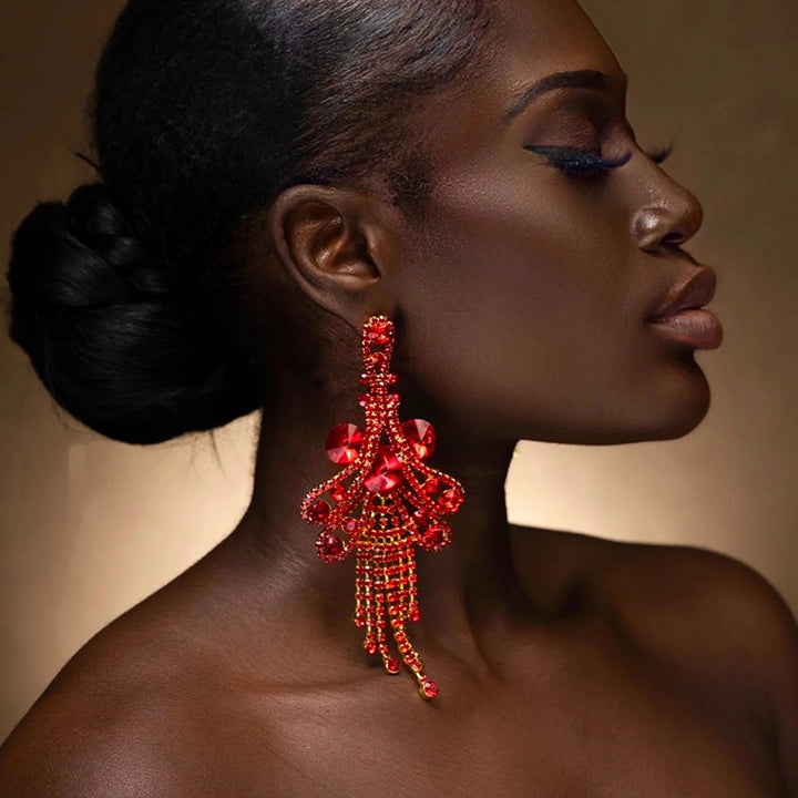Exaggerate Colorful Crystal Fringe Earrings Accessories for Women Statement Rhinestone Dangle Earrings Jewelry