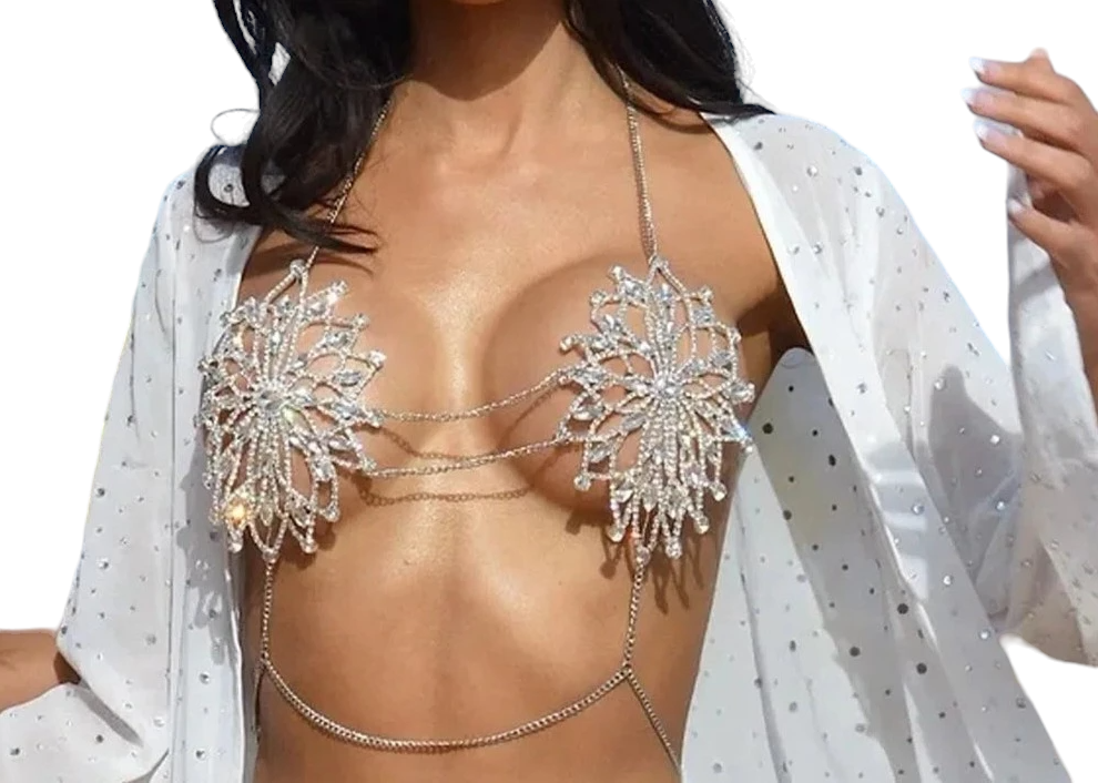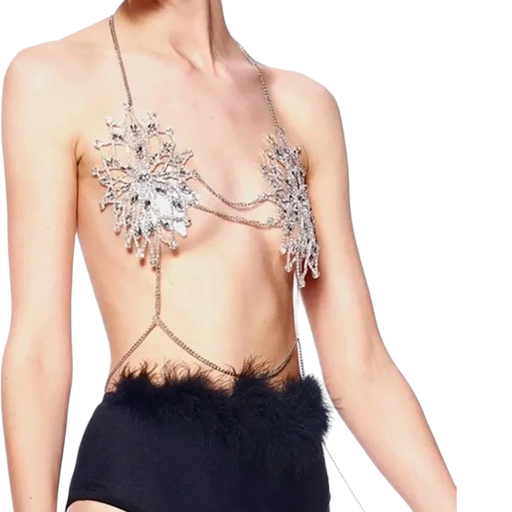 The Rhinestone Flower Bra Lingerie Chain is a captivating piece of body jewelry with a rich history that reflects its evolution from China (CN) to becoming a trendy and fashionable accessory for women and ladies across various occasions.