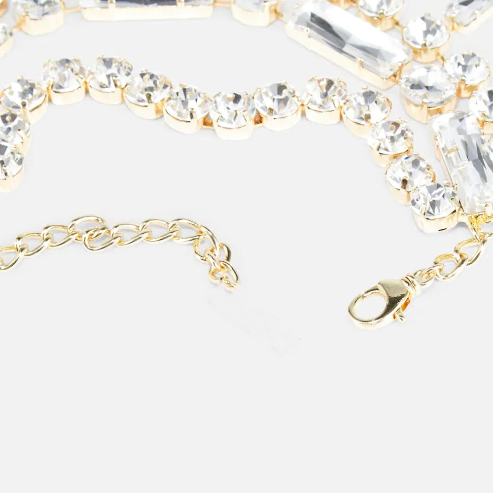 Luxury Multi Layer Square Choker Necklace Shiny Women Crystal Statement Necklaces Jewelry for Wedding