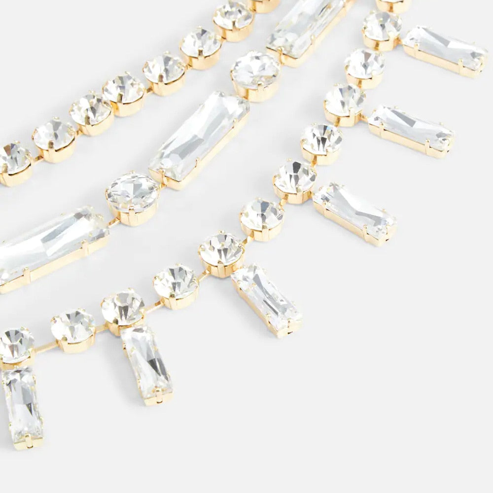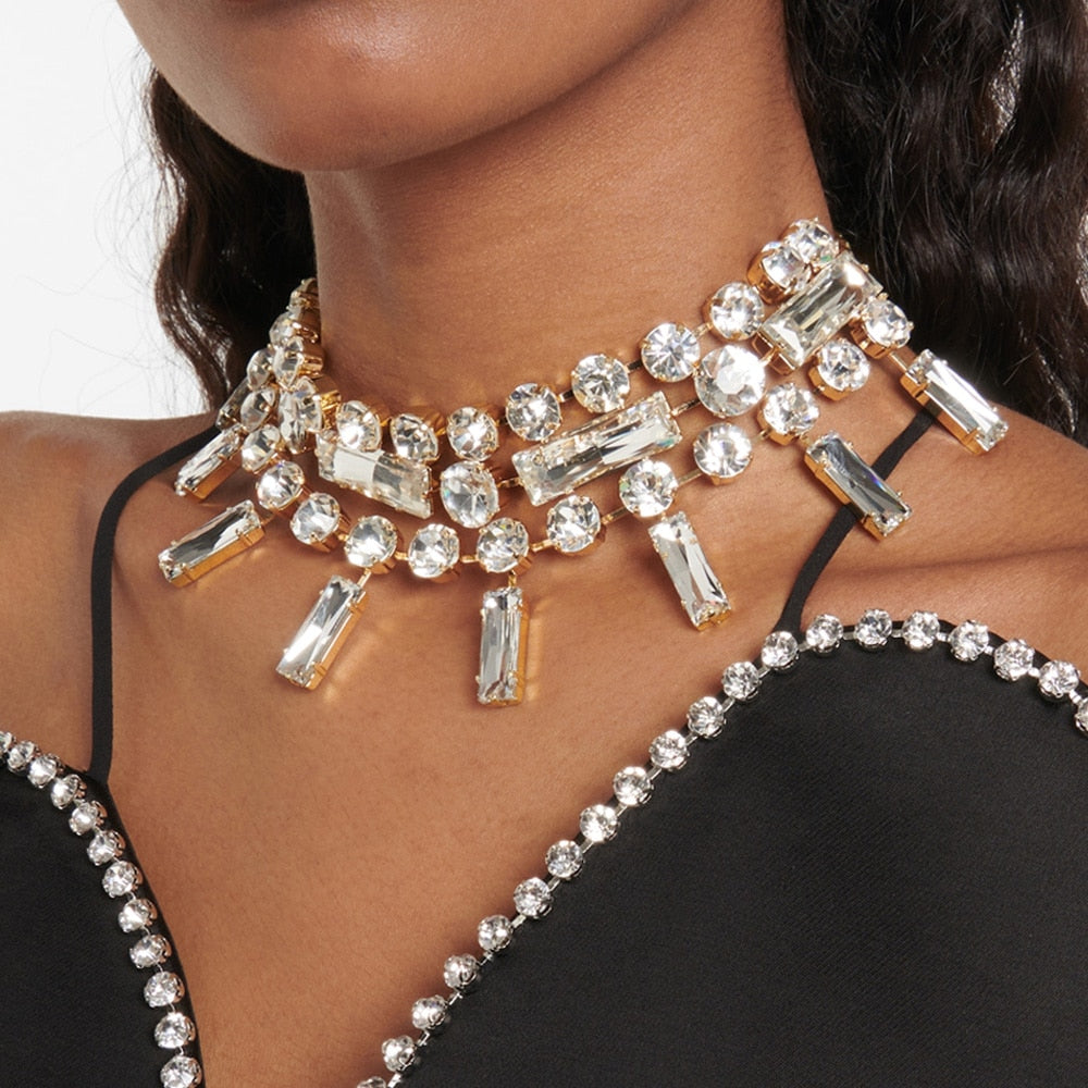 Describe: Luxury Multi Layer Square Choker Necklace Shiny Women Crystal Statement Necklaces Jewelry for Wedding