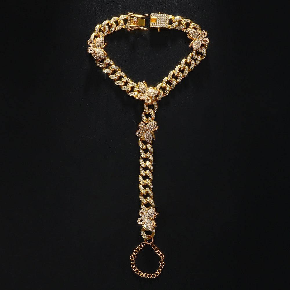 Rhinestone Crystal Butterfly Cuban Link Anklets for Women Barefoot Sandal Anklet Bracelet Foot Jewelry
