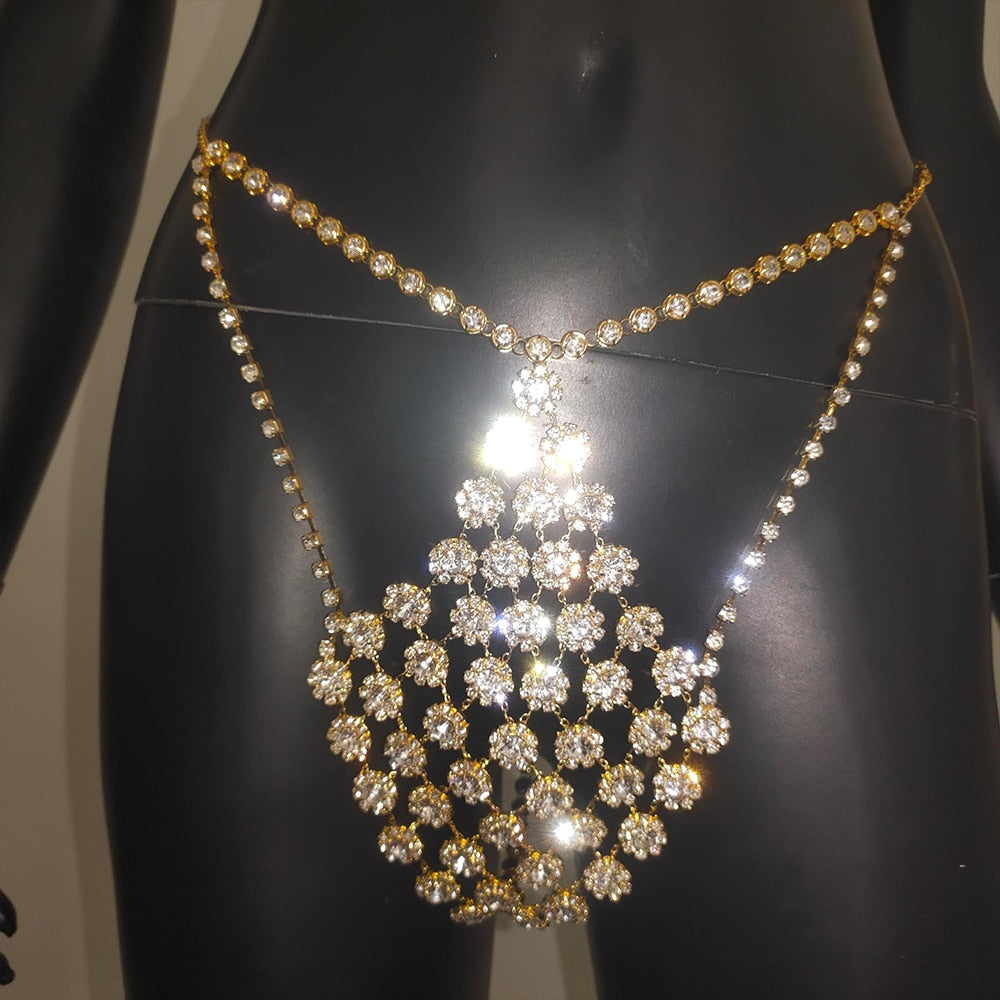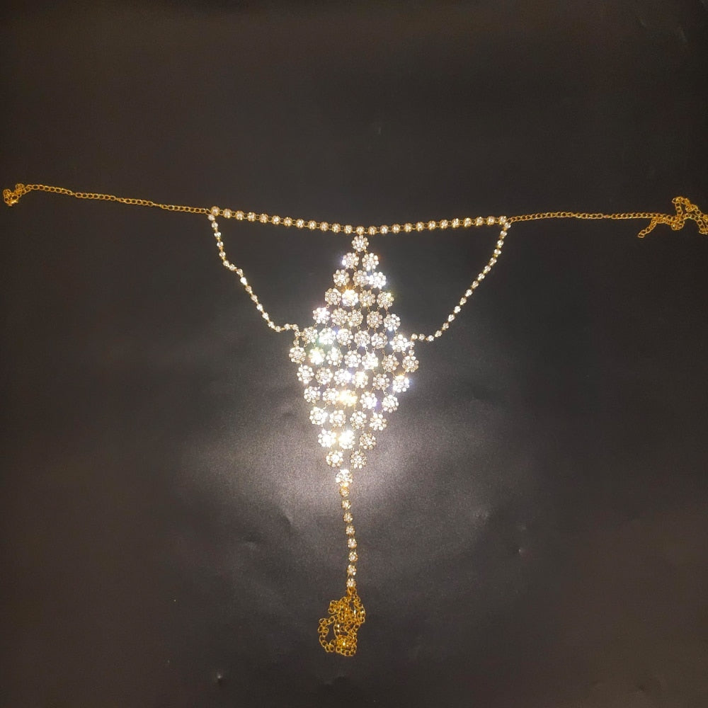 Crystal Mesh Thong Low Waist Panties Rhinestone Belly Stable Bikinis Briefs Jewelry