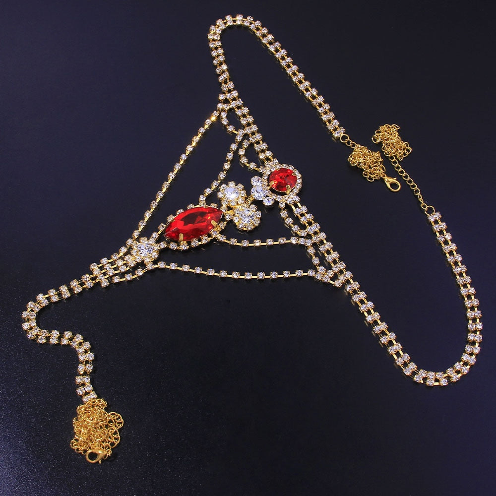 Sexy Red Geometric Underwear for Women Lingerie Crystal Boho Belly Belt Women Summer Bikini Accessories Rave Body Jewelry